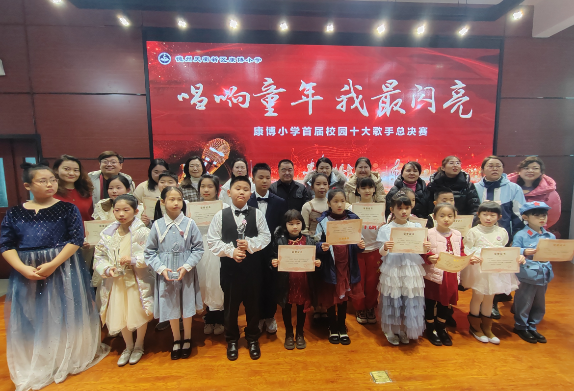 唱响童年,我最闪亮!12月25日,康博小学首届校园十大歌手总决赛收官,16名小选手登台献艺,经过2个小时的角逐,最终,四·四班魏景瑶同学,凭借自弹自唱的英文歌曲《500miles》摘得冠军,三·五班的方艺茹同学斩获亚军,四·五班的顾清乾同学荣获季军。