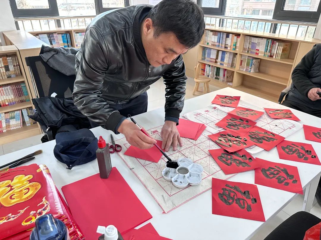 活动还邀请社区“能人”房国剑写福字送给孩子们。