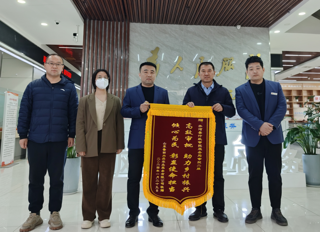 “审批局给我们制定的专属方案,解决了我们不知道要办什么和不知道怎么办的难题,让我们省时省力省心地拿到了相关证件,真是太感谢你们了!”近日,山东鲁田尚品农业服务有限公司负责人将一面印有“高效审批助力乡村振兴,倾心为民彰显使命担当”的锦旗送至齐河县行政审批服务局,并对工作人员的高效服务表示诚挚的感谢和高度赞扬。