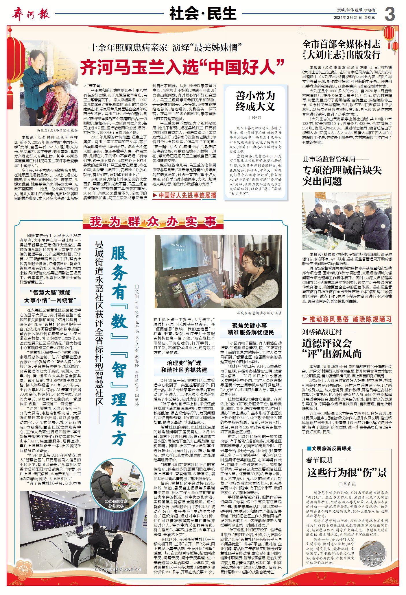 ▶齐河马玉兰入选“中国好人”。(点击查看详情)