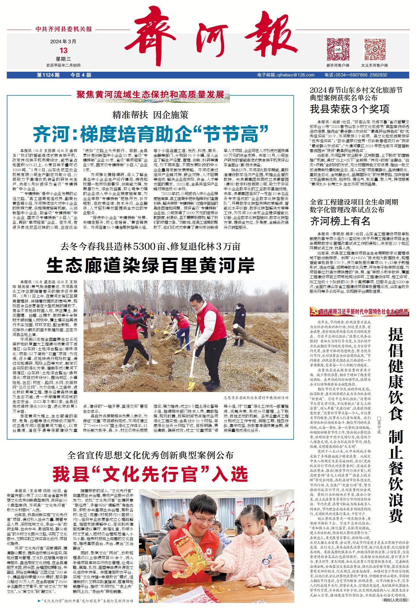 ▶造林5300亩、修复退化林3万亩!齐河生态廊道染绿百里黄河岸。(点击查看详情)