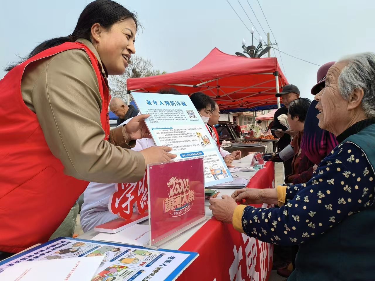 “赶集喽,小摊位,大文明!多样志愿服务不要错过喽!”4月2日上午9点,在乐陵市丁坞镇杨盘大集上,一场“文明实践‘赶大集’ 美德健康‘零距离’”主题活动启动,身穿红马甲的志愿者不时吆喝“揽客”,吸引了不少赶集群众参与互动。