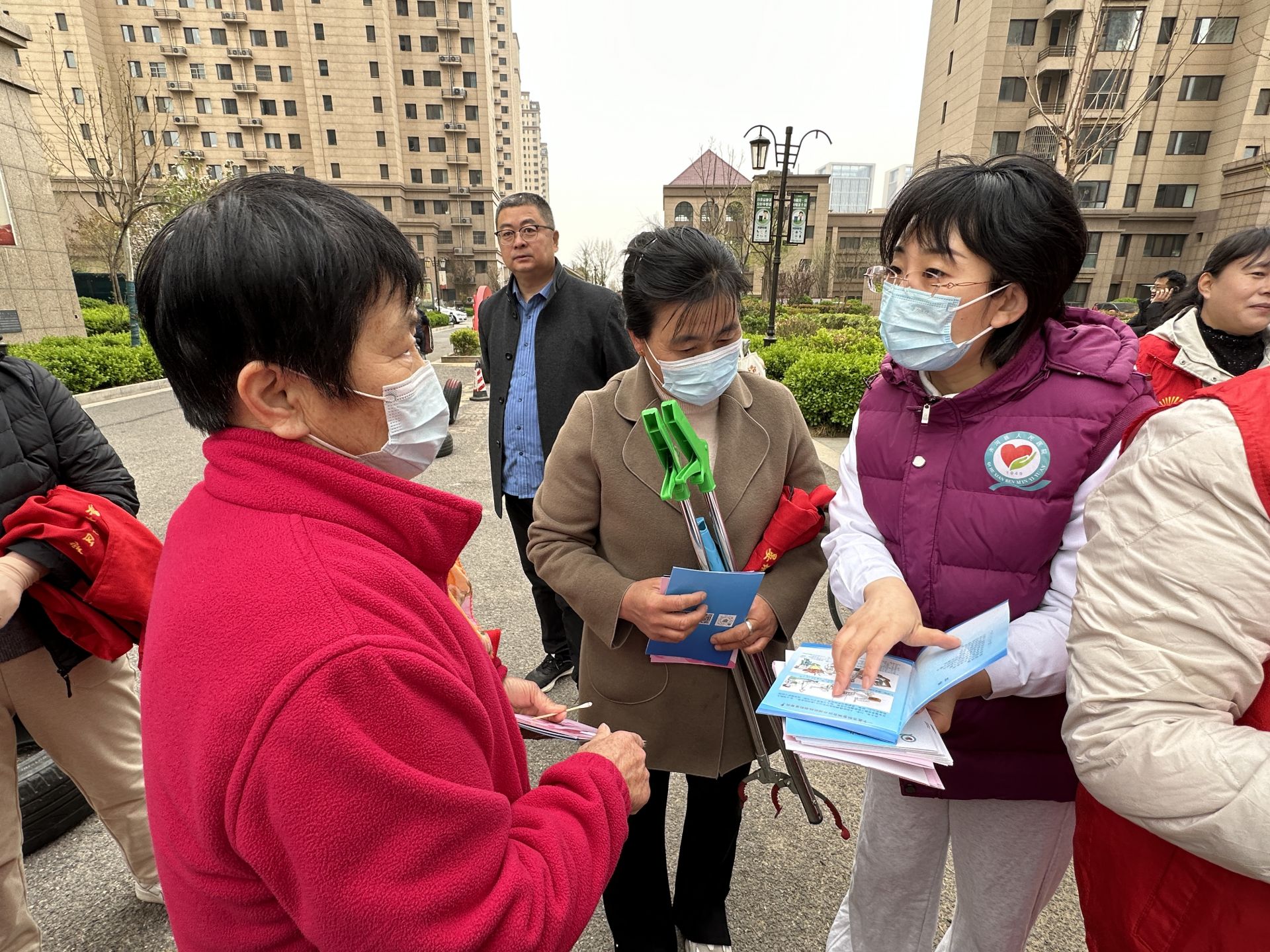 活动中,医护人员以及社区工作人员还向小区居民发放了健康宣教资料和惠民保险宣传页。