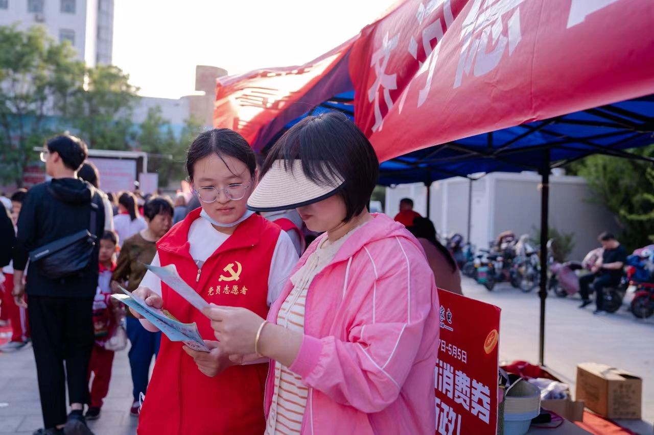 “这个玩具还很新,只卖两块钱,感兴趣可以玩一下。”“这里有试吃的产品,大家可以尝一尝再购买。”“大爷,您血糖有点偏高,最近饮食需要注意一下。”4月26日走进齐河县晏城街道永和社区文化中心广场,大大小小的摊位错落有致,来往人员络绎不绝。