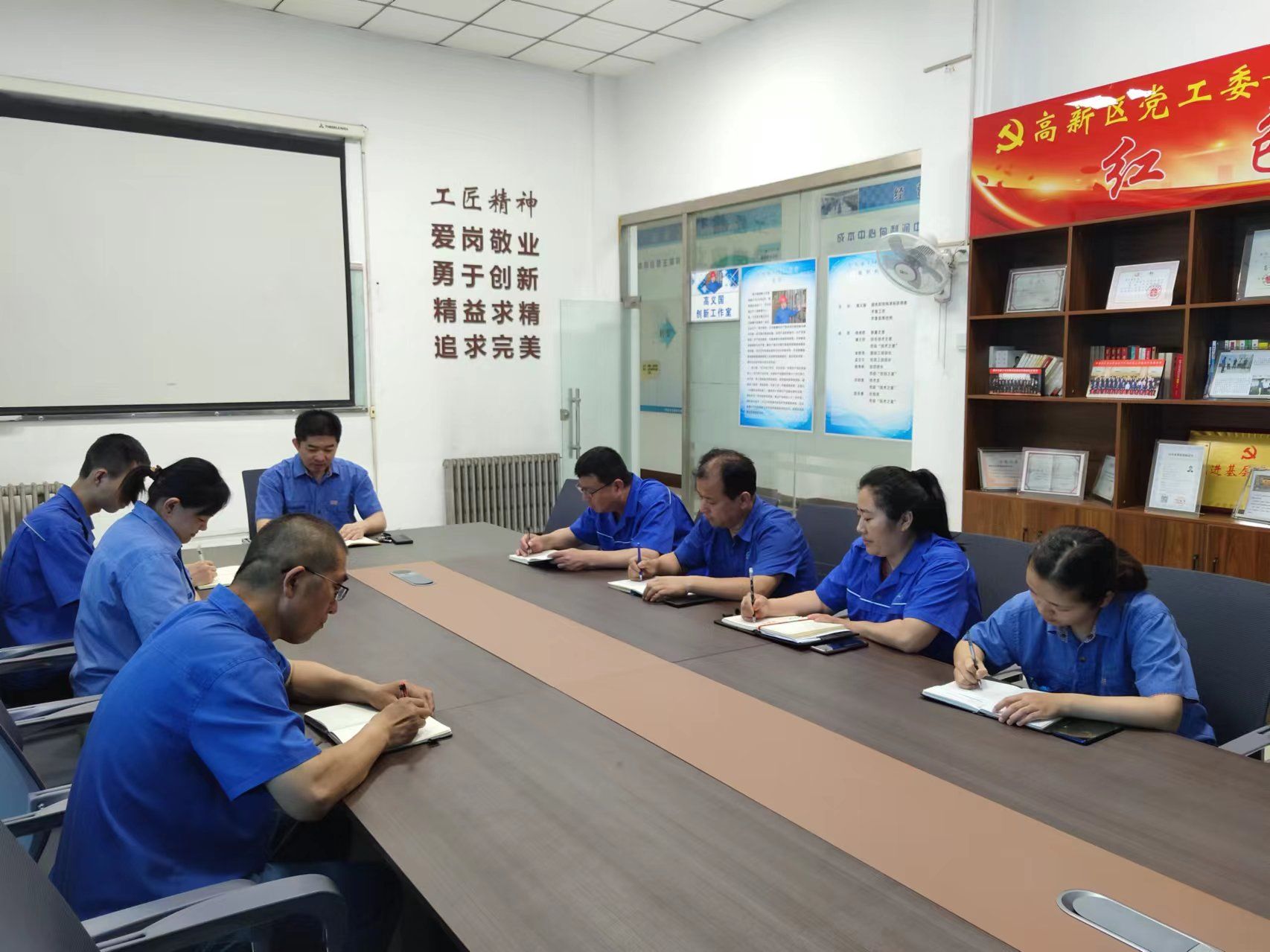 早在2008年,高义国便在自己的车间开设了“工间课堂”。“休息时间开展15分钟左右的专题学习,没有讲台、黑板,几个人围在一起讨论,边讲理论边实操。”高义国说。此外,他还牵头建立了“单点课堂”制度,要求每名一线工人走上讲台,讲技术、谈感想、定目标,每月至少一次。公司研发技改方面的成果,一大半都是在“单点课堂”上产生的。