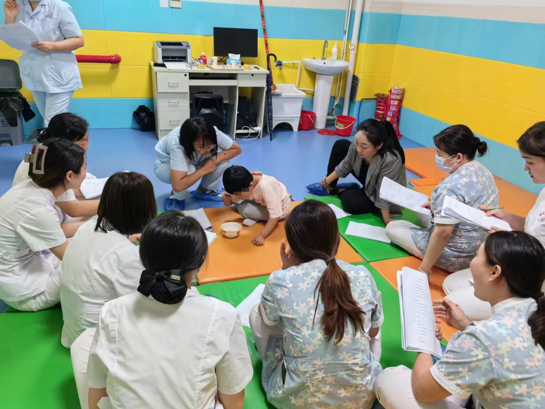 临邑县人民医院在上级政策支持下,被确定为“十四五”残疾儿童早期干预试点单位,县人民医院组建了一支由康复医师、康复治疗师、特教老师、护理人员等组成的专业干预团队,开展“医教结合”体系化早期干预康复服务,定期邀请北京市海淀区妇幼保健院专家教授来院坐诊指导,规划专业发展方向,提供精准化诊疗指导。