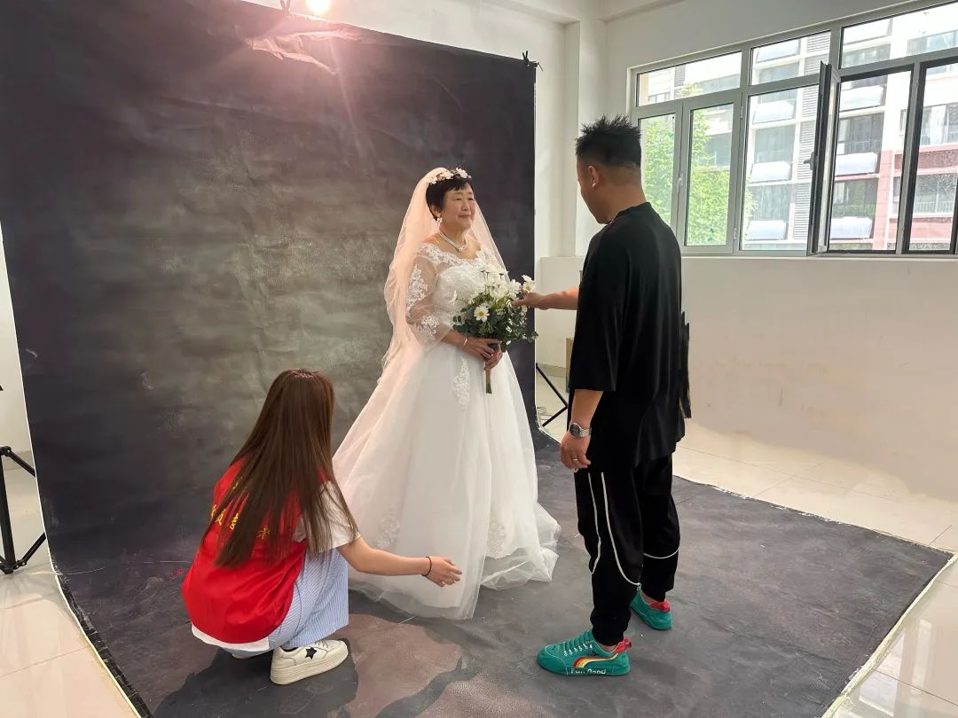 “叔叔阿姨靠近一点,头摆正一点,笑一笑。”随着相机快门“咔嚓”一声,一张张幸福的笑脸定格在相机中。“年轻时没有拍过婚纱照总感觉有些遗憾,我身体不好,出不了远门,很感谢社区给我们提供了这个在家门口拍婚纱照的机会,圆了我的婚纱梦。”社区居民刘女士表示。