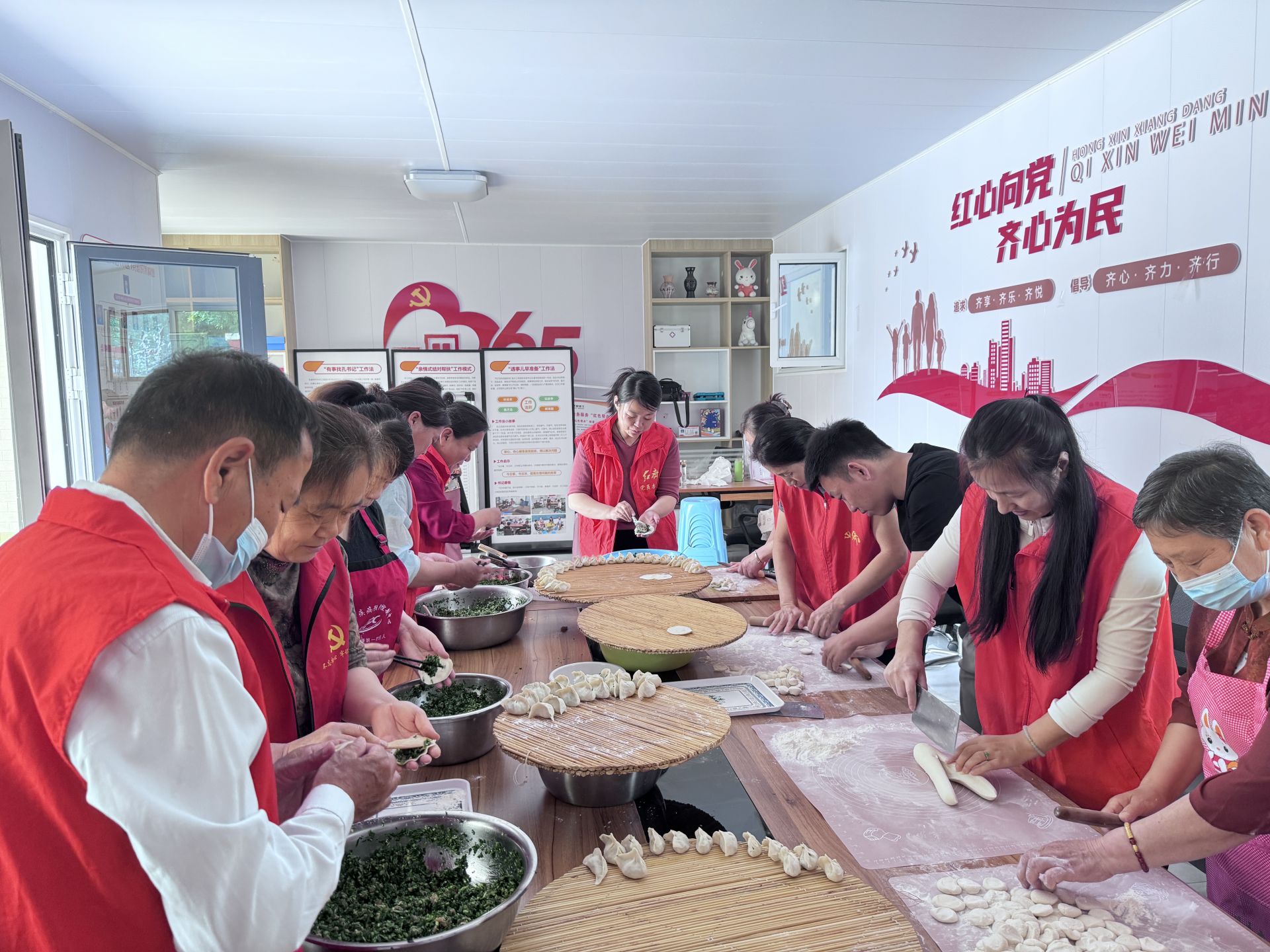 天工花园小区党支部联合“红色合伙人”康净物业以及邮政储蓄银行开展了一场专为80岁以上的老妈妈们举办的包水饺活动。志愿者们齐聚一堂,大家分工明确,有的负责揉面,有的负责擀皮,有的则精心地包着一个个充满爱心的水饺。老人们在志愿者的搀扶下缓缓来到红齐驿站,社区工作者以及网格员热心地为老人们剥香蕉、递上蛋糕和橘子,再将水饺端到他们面前。针对行动不便的老人,网格员还将水饺送到了他们家中。
