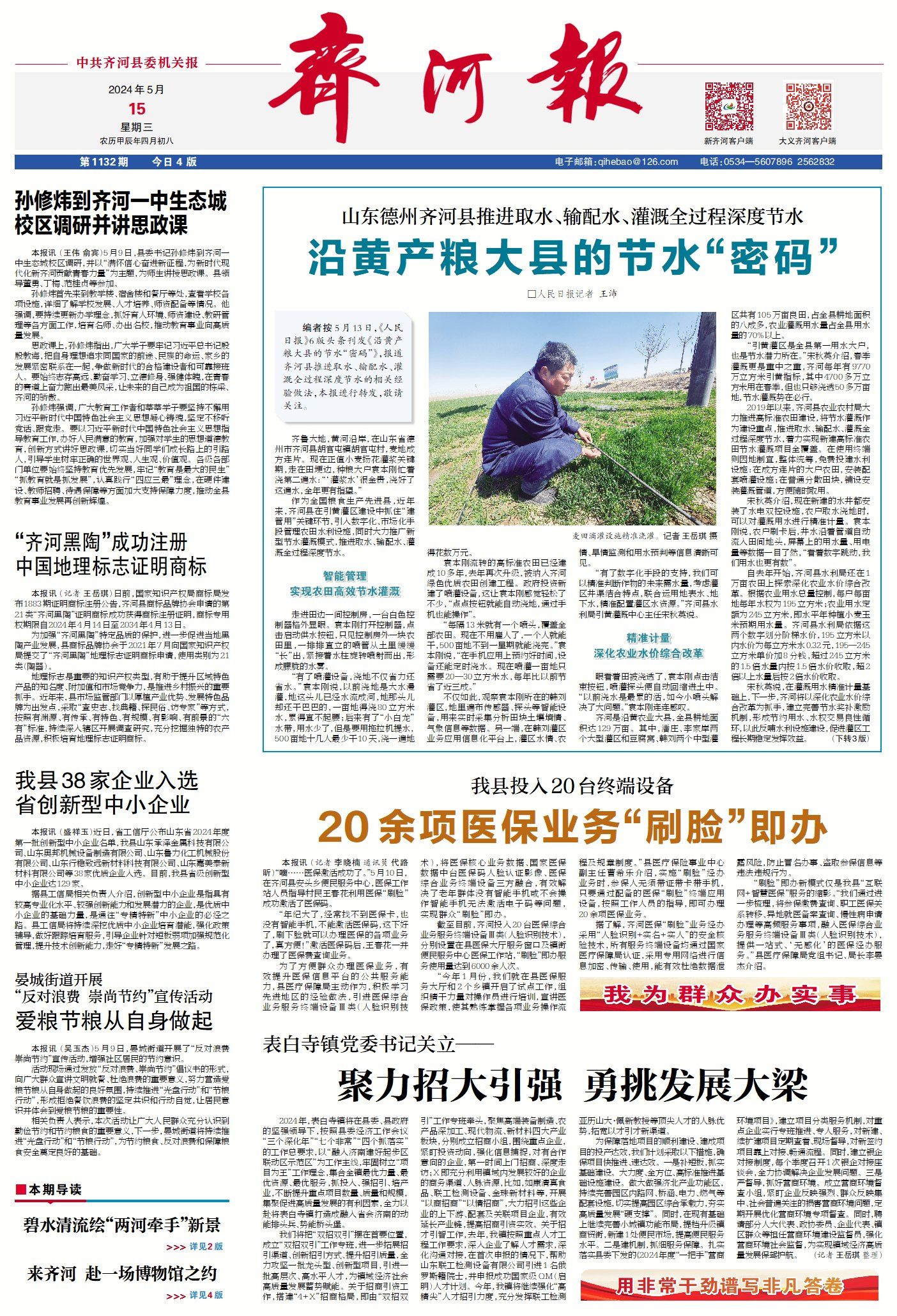 ▶《人民日报》聚焦山东齐河县:沿黄产粮大县的节水“密码”。(点击查看详情)