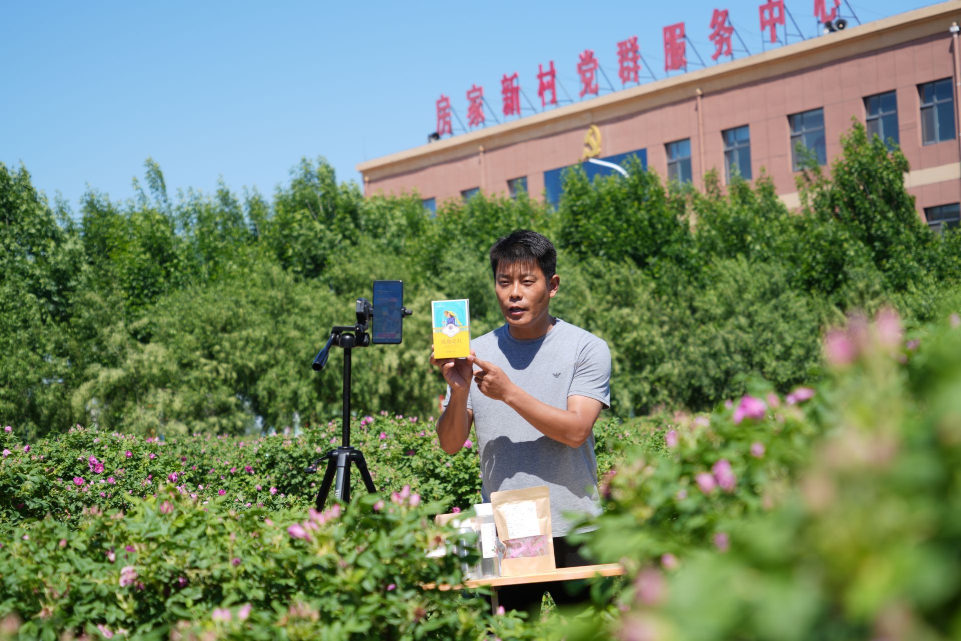 “这里我们房家村自己种的玫瑰制成的干花,每斤40元。除了干花之外,玫瑰花饼、玫瑰花茶,都在直播间里下方的小黄车里了。玫瑰花制成的食品美容养颜,特别适合咱们女性朋友们,喜欢的朋友请赶快下单吧!”直播间里,许多网友争相弹幕留言、抢购,好不热闹。