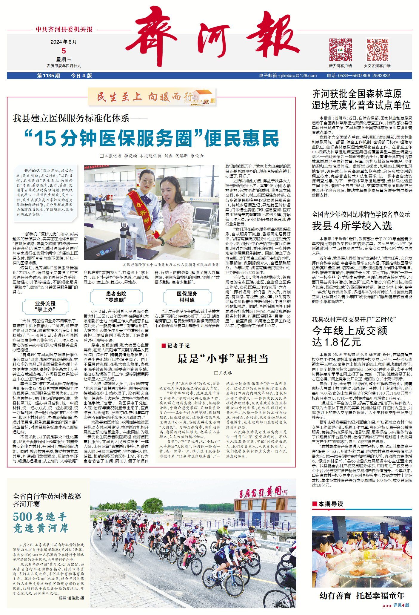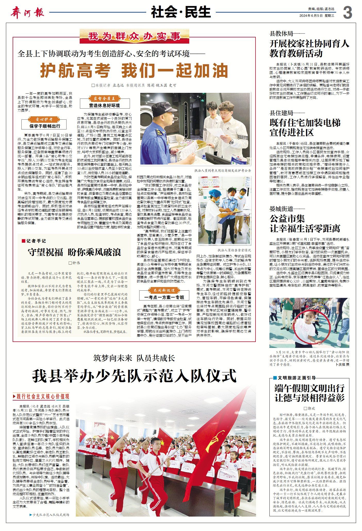 齐河县新闻周报(5月30日至6月5日) ©原创 2024-06-05 08:32 德州日报 0 ▶齐河:“15分钟医保服务圈”便民惠民。(点击查看详情) ▶齐河表白寺镇:聚链成势 攀高逐新产业兴。(点击查看详情) ▶齐河上下协调联动为考生创造舒心、安全的考试环境|护航高考 我们一起加油。(点击查看详情) ▶齐河县举办少先队示范入队仪式。(点击查看详情) ▶何以齐河 | 幼有善育 托起幸福童年(查看详情)。 德州日报新媒体出品编辑|李晓楠审核|钟伟 终审|尹滨 (作者:德州日报)