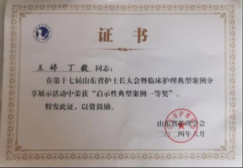近日,由山东省护理学会主办的第十七届山东省护士长大会暨临床护理典型案例分享展示大赛在泰安举办。齐河县人民医院重症医学科王婷、丁毅荣获全省一等奖,是唯一一家获启示性案例一等奖的二级医院。