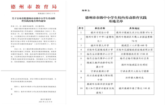 日前,首批德州市市级中小学生劳动教育实践基地名单公布,乐陵市花园镇鸿英小学上榜,被评为“德州市市级中小学生校内劳动教育实践基地”。