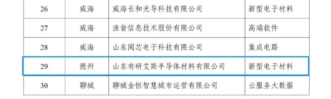 山东有研艾斯半导体材料有限公司入选