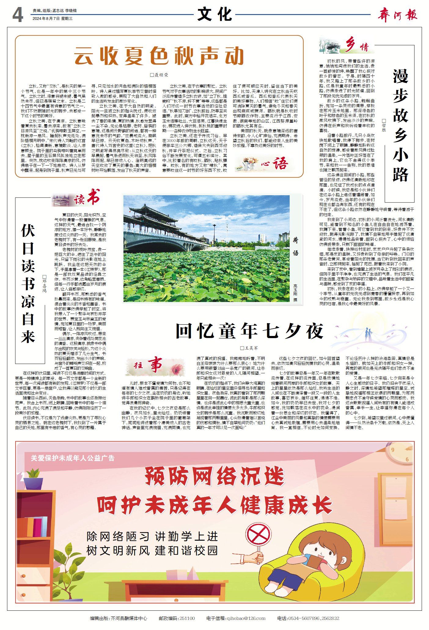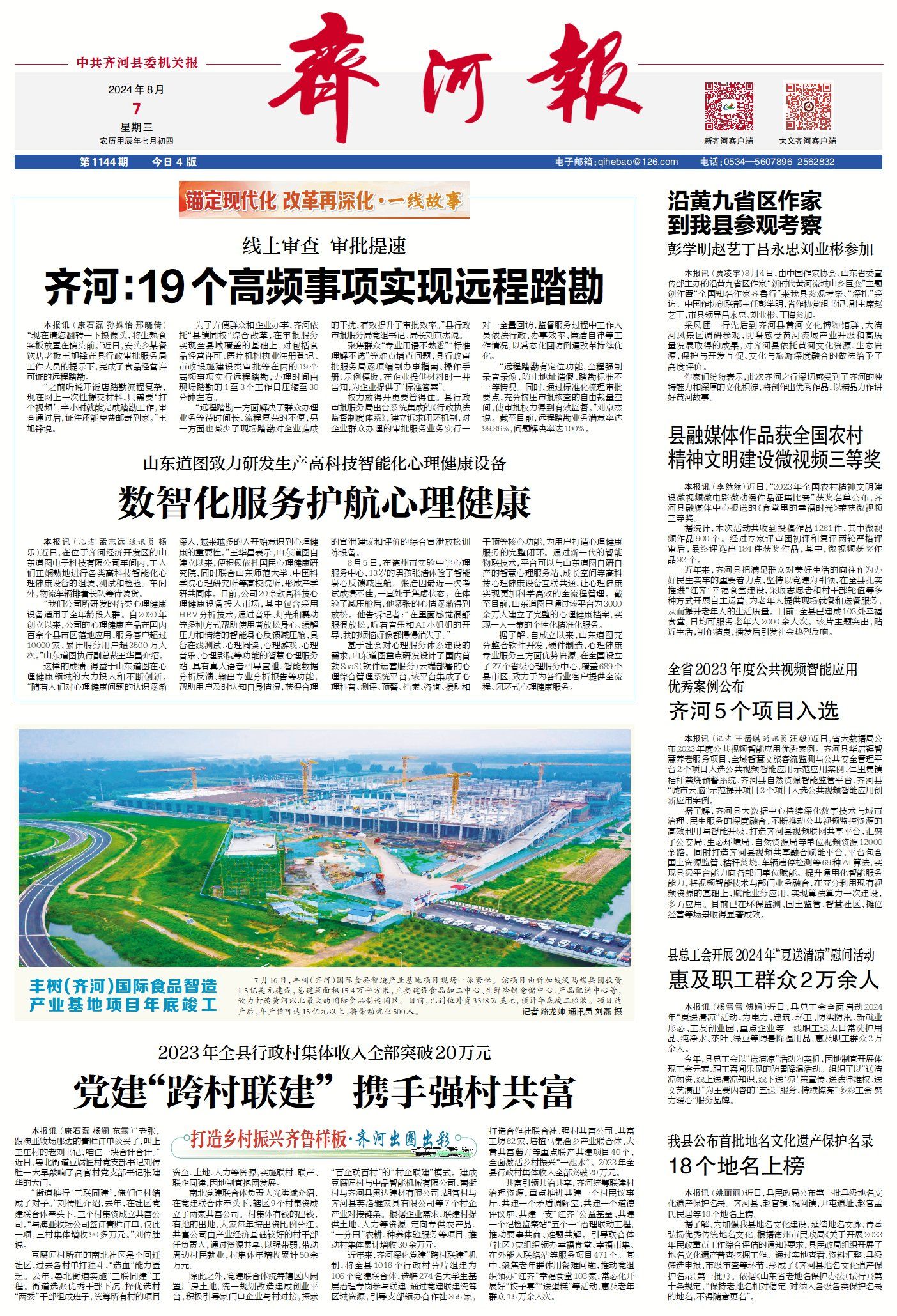 齐河县新闻周报(8月1日至8月7日) ©原创 2024-08-07 07:47 德州日报 0 ▶齐河:19个高频事项实现远程踏勘。(点击查看详情) ▶山东道图:数智化服务护航心理健康。(点击查看详情) ▶齐河:党建“跨村联建” 携手强村共富。(点击查看内容) ▶齐河:敲响“绿色法槌” 守护秀美黄河。(点击查看详情) ▶齐河县中医药文化夜市大型义诊火热开张。(点击查看详情) ▶齐河众创置业有限公司总经理张静:为齐河引入更多优质企业。(点击查看详情) ▶文化 | 云收夏色秋声动(外三篇·首)。 德州日报新媒体出品编辑|孟志远审核|钟伟 终审|尹滨 (作者:德州日报)