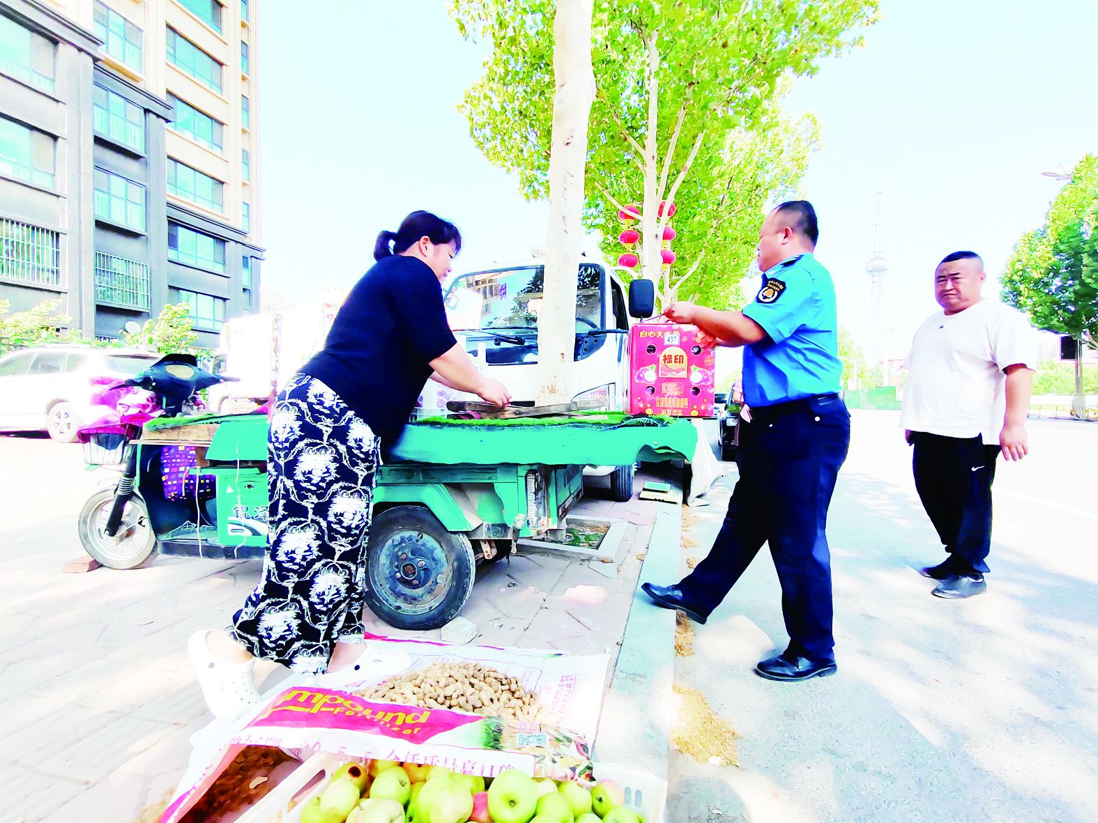 城管执法人员帮商贩出摊