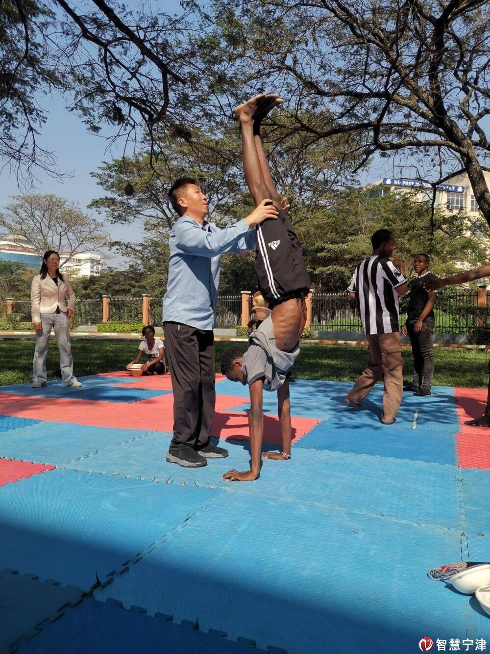 8月5日,“中华文化大乐园”肯尼亚内罗毕营开营,宁津县杂技团的副团长杨福庆为肯雅塔大学及其他学校的学生带去了杂技课程,教他们草帽、水流星等中国传统杂技表演。