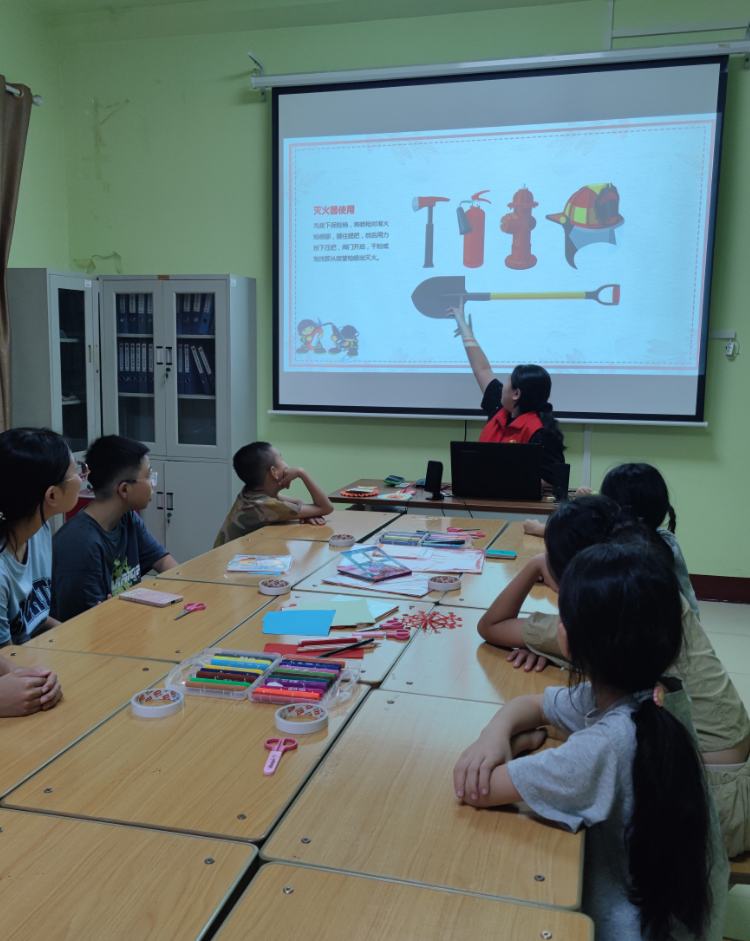 活动开始之前,社区志愿者先为小朋友们带来了一节消防安全知识课程。志愿者通过列举身边的事故案例,深入浅出地分析了火灾的常见原因,如电器使用不当、易燃物堆积、乱扔烟头等,并提出了相应的预防措施,鼓励小朋友们养成良好的生活习惯。同时,向小朋友们普及了一些基本的消防安全常识、火场逃生知识、正确报火警等,提高了小朋友们的应急能力。