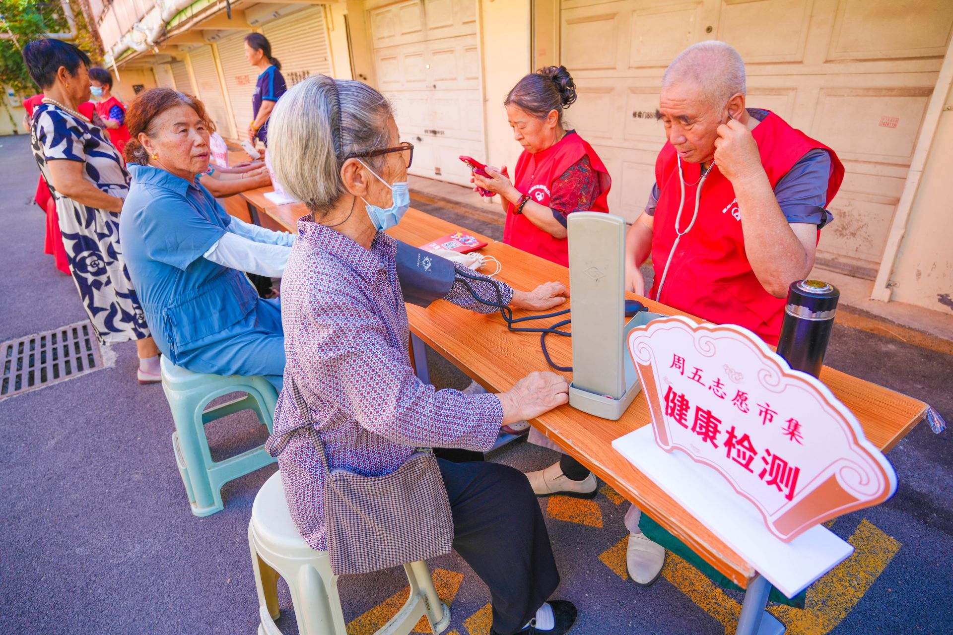 “周五志愿红”是城隍庙社区于2018年组织成立的志愿服务活动队伍。城隍庙社区党支部书记刘娇介绍,最初是想为群众提供力所能及的服务,目前拥有志愿者15人,主要活动内容是每周五在社区新时代文明实践站为辖区居民群众提供测血糖、测血压、理发、缝补衣物等志愿服务。