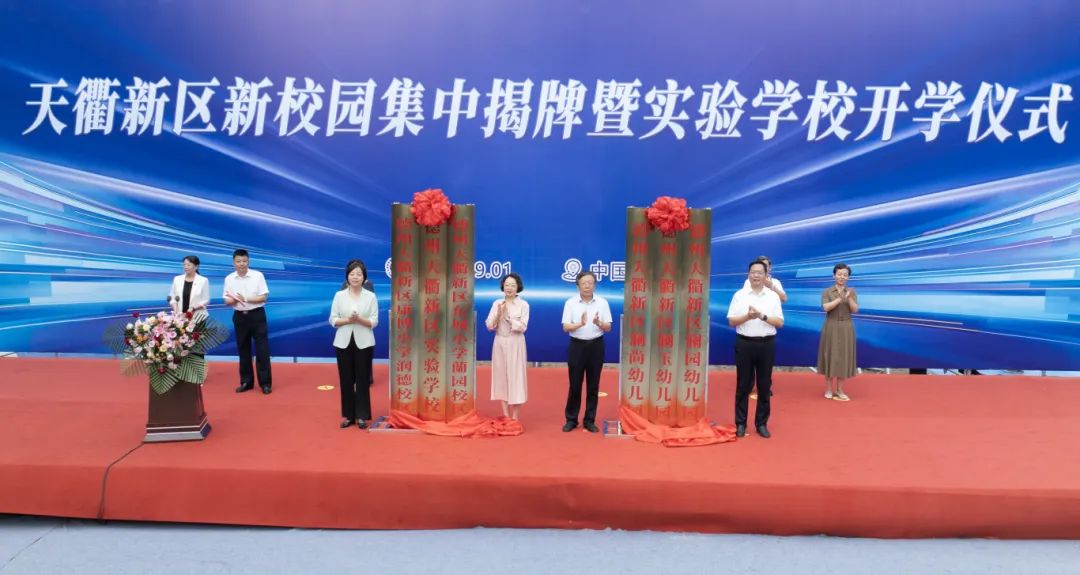 仪式上,祁小青、陈晓强为天衢新区实验学校、康博小学润德校区、东城小学蘭园校区揭牌,隋力、王大山为天衢新区澜园幼儿园、澜尚幼儿园、澜玉幼儿园揭牌。