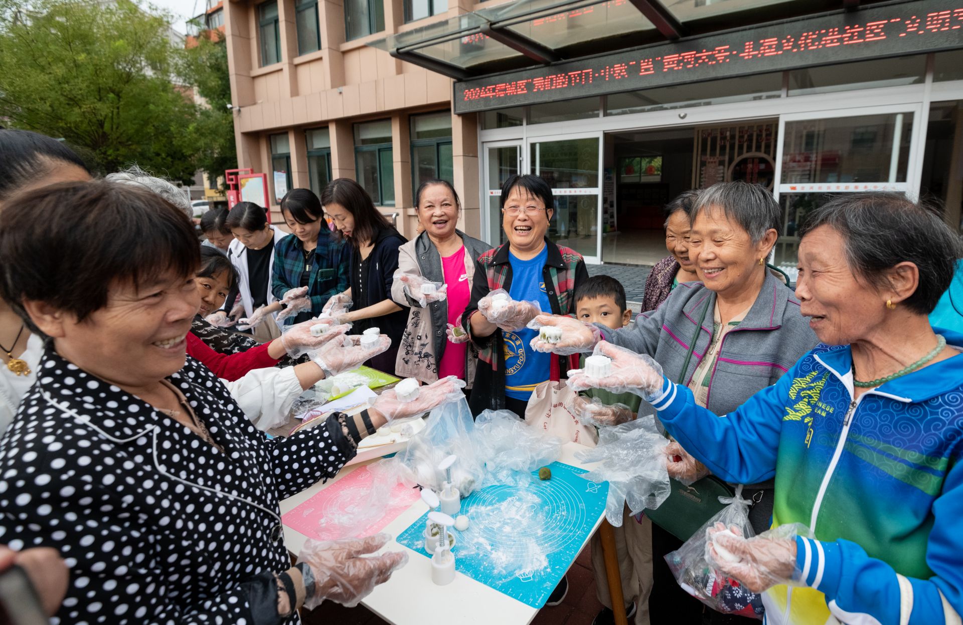 现场最受群众欢迎的莫过于月饼现场制作区,社区工作人员与居民们一同动手,现场制作冰皮月饼。在欢声笑语中,一个个圆润饱满、色彩诱人的月饼新鲜出炉,不仅满足了味蕾的享受,更让居民们体验到了传统节日的乐趣与温情。