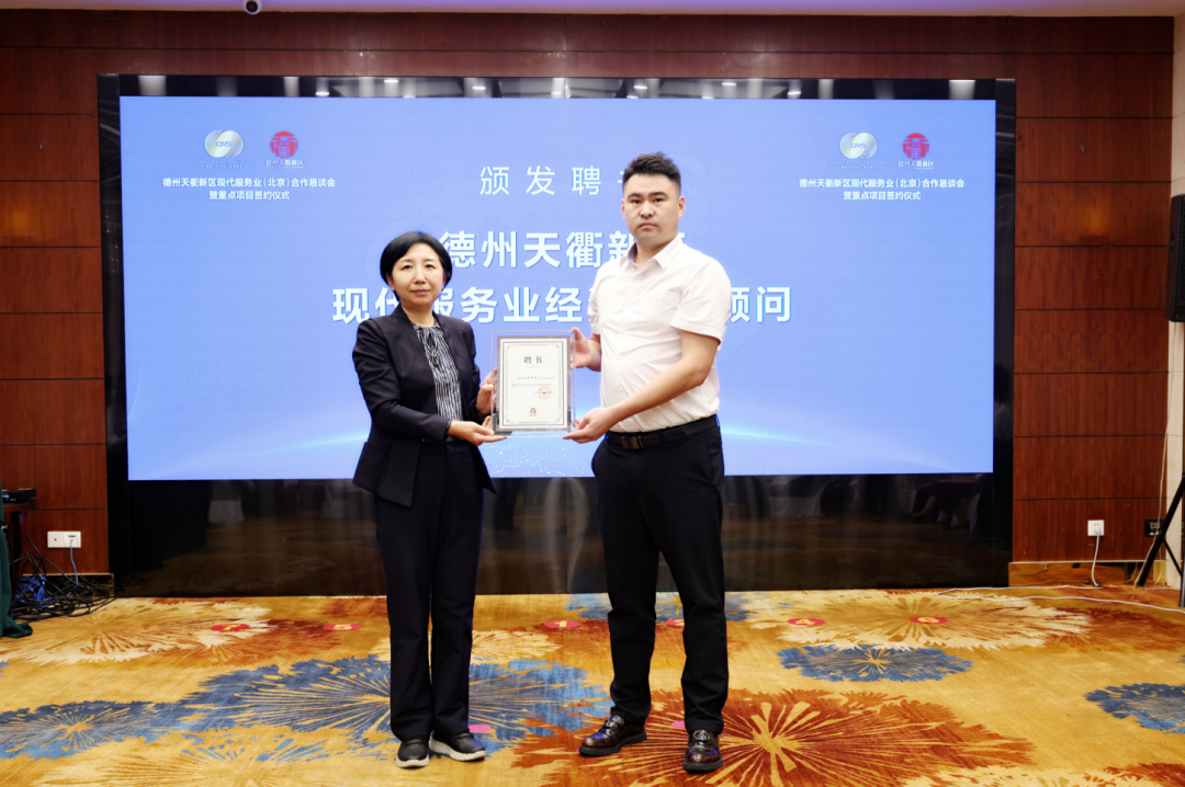 9月27日,德州天衢新区在北京举办现代服务业合作恳谈会,会上聘请邓腾等5人为现代服务业经济发展顾问。