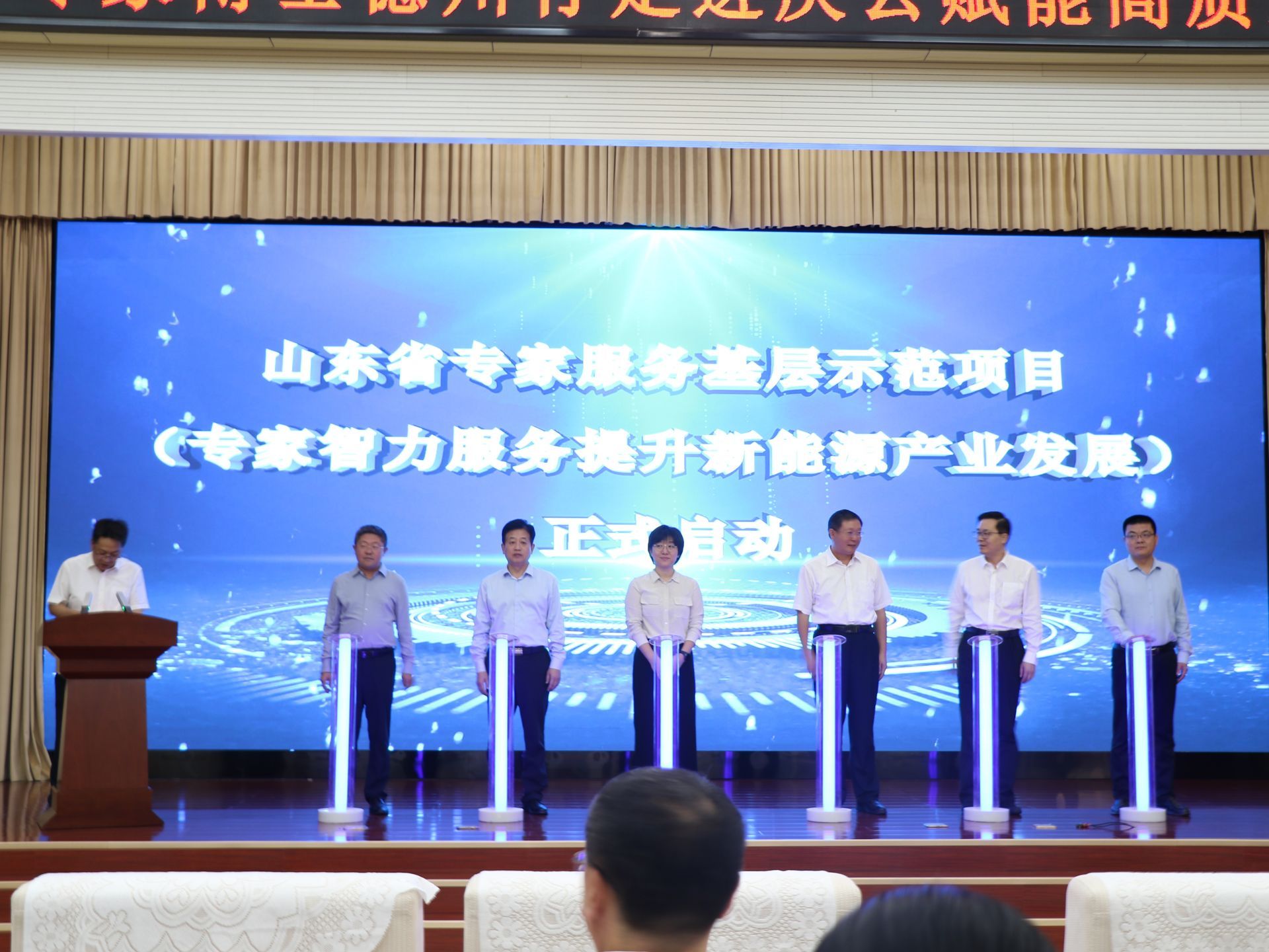 活动现场同步举行了专家智力服务提升新能源产业发展启动仪式。省人社厅留学人员和专家服务中心主任许芳发言做出指示,为庆云高质量发展点亮航标灯;曲阜师范大学与庆云县人民政府、中科亿博合作签约人才战略合作框架协议;同时与会领导为绿能环宇、曲阜师范大学、云天教育集团等企业及高校进行授牌,为后期校地企开展深入合作奠定坚实基础。