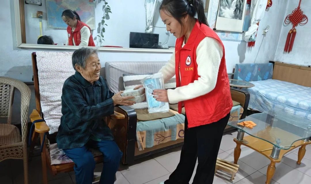志愿者为辖区高龄、独居老人送上热腾腾的水饺,并带去节日的祝福。