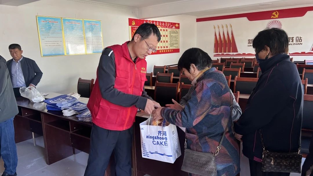 在红庙朱村,志愿者们为村里60周岁以上老人送蛋糕、扒鸡,开展爱老敬老志愿活动,让村民感受到来自红庙朱村大家庭的温暖。