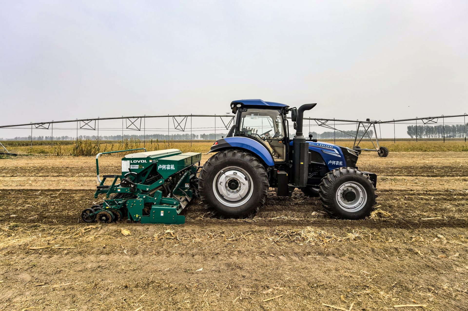 乐陵市黄夹镇德鑫生态种植家庭农场,农场主用新型无人驾驶播种机在进行小麦播种。