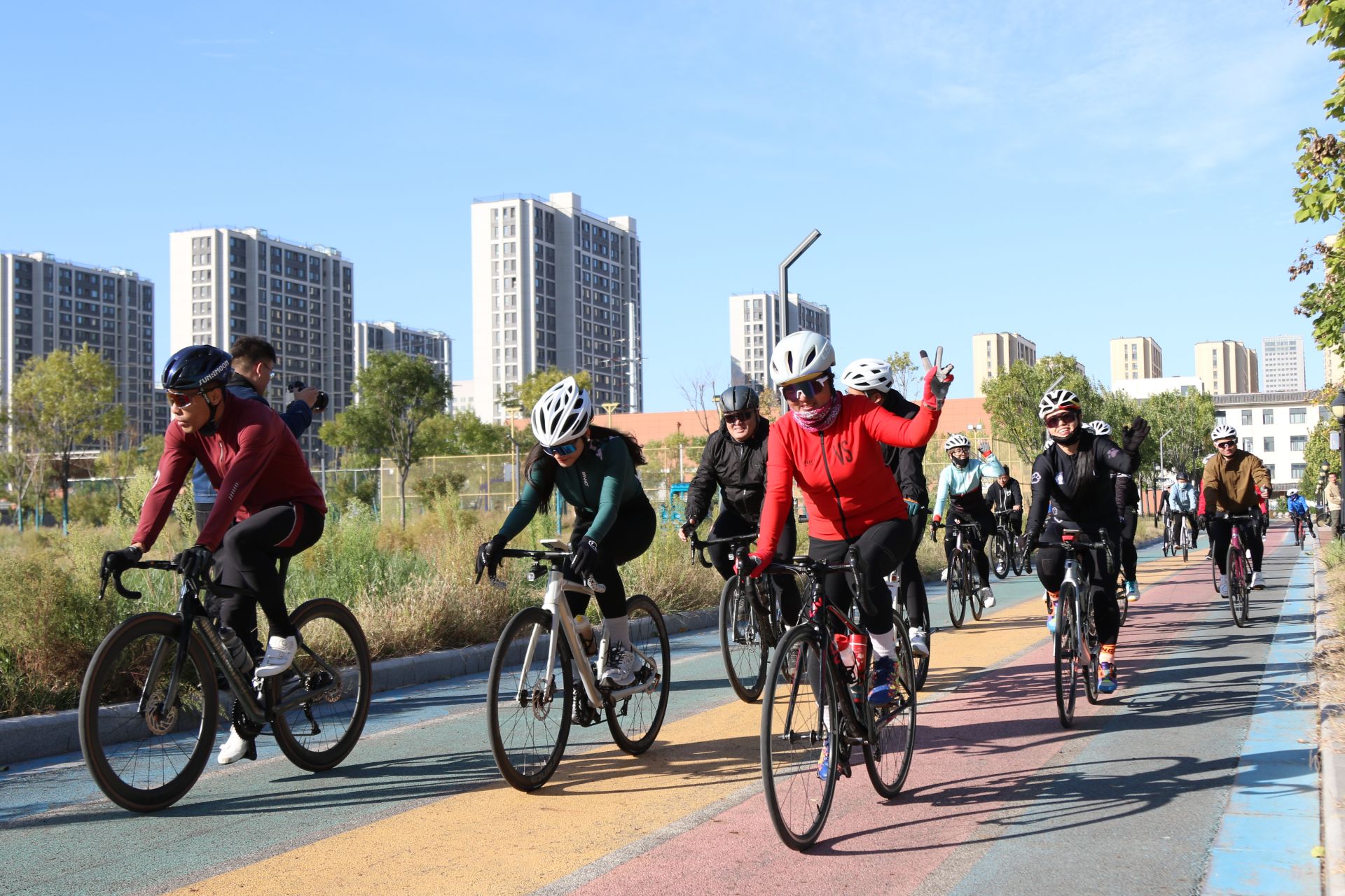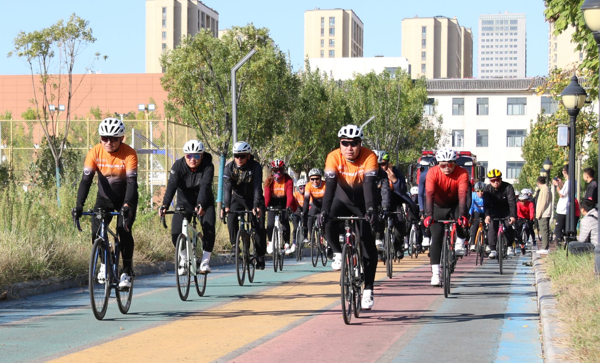 赛道内,骑手和跑者挥洒汗水,勇往直前。前来观赛的市民热情呐喊,迎接着每一位运动爱好者的到来,尽情展示好客热情和地方人文风情,提升跑友参赛体验。赛道外,保障人员各司其职,尽最大努力为跑者提供贴心的服务,保证赛事顺利进行。