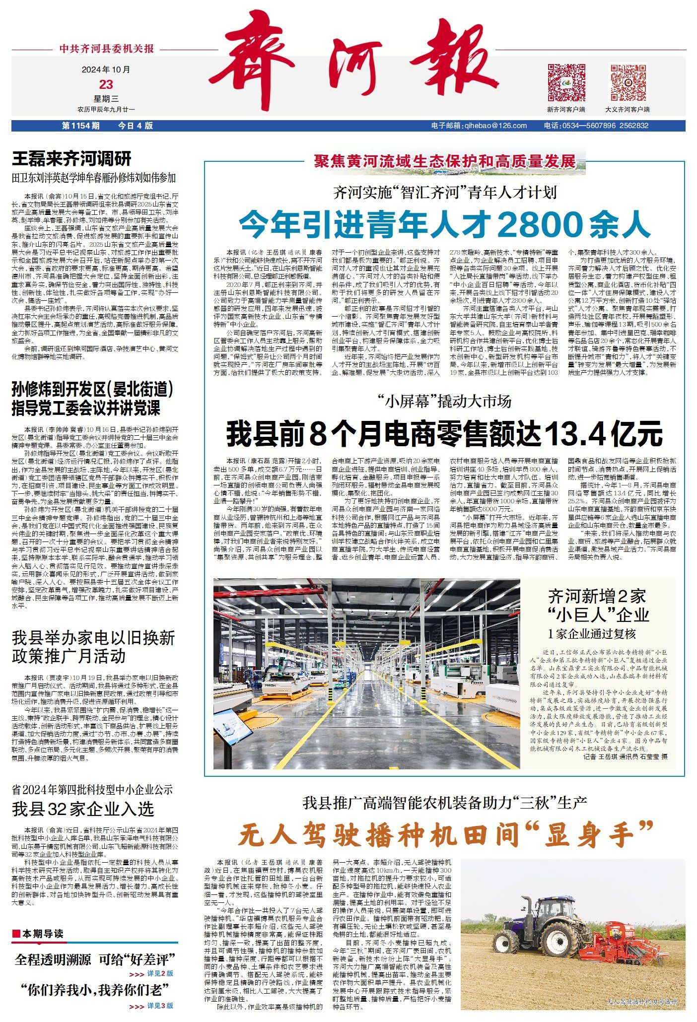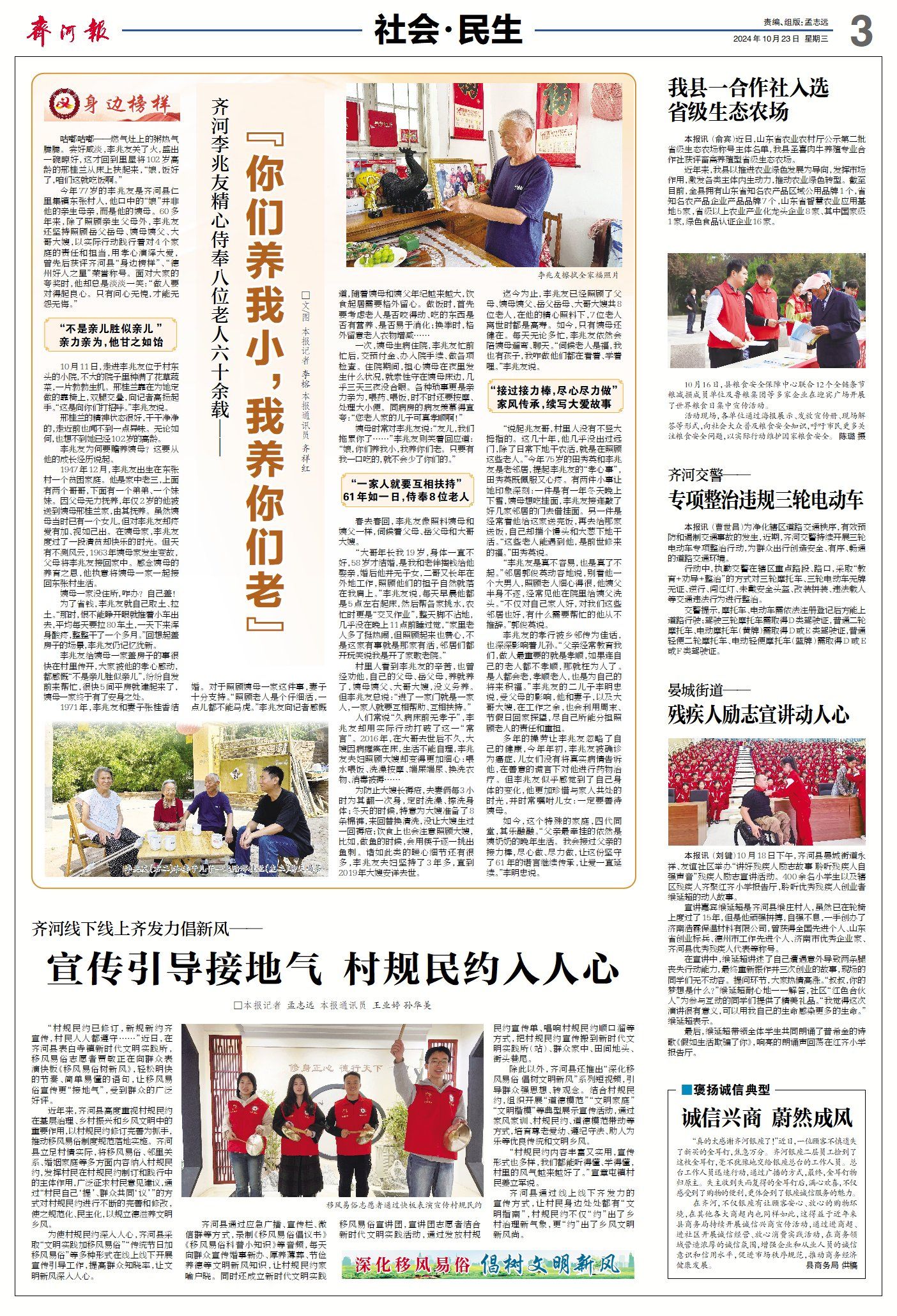 齐河县新闻周报(10月17日至10月23日) ©原创 2024-10-23 07:54 德州日报 0 ▶齐河实施“智汇齐河”青年人才计划,今年引进青年人才2800余人。(点击查看详情) ▶小屏幕撬动大市场!齐河前8个月电商零售额达13.4亿元。(点击查看详情) ▶齐河政务服务:全程透明溯源 可给“好差评”。(点击查看详情) ▶齐河李兆友侍奉八位老人六十余载:“你们养我小,我养你们老”。(点击查看详情) ▶齐河:宣传引导接地气 村规民约入人心。(点击查看详情) ▶文化 | 古诗里邂逅霜降(外五篇·首)。 德州日报新媒体出品编辑|李晓楠审核|钟伟 终审|尹滨 (作者:德州日报)