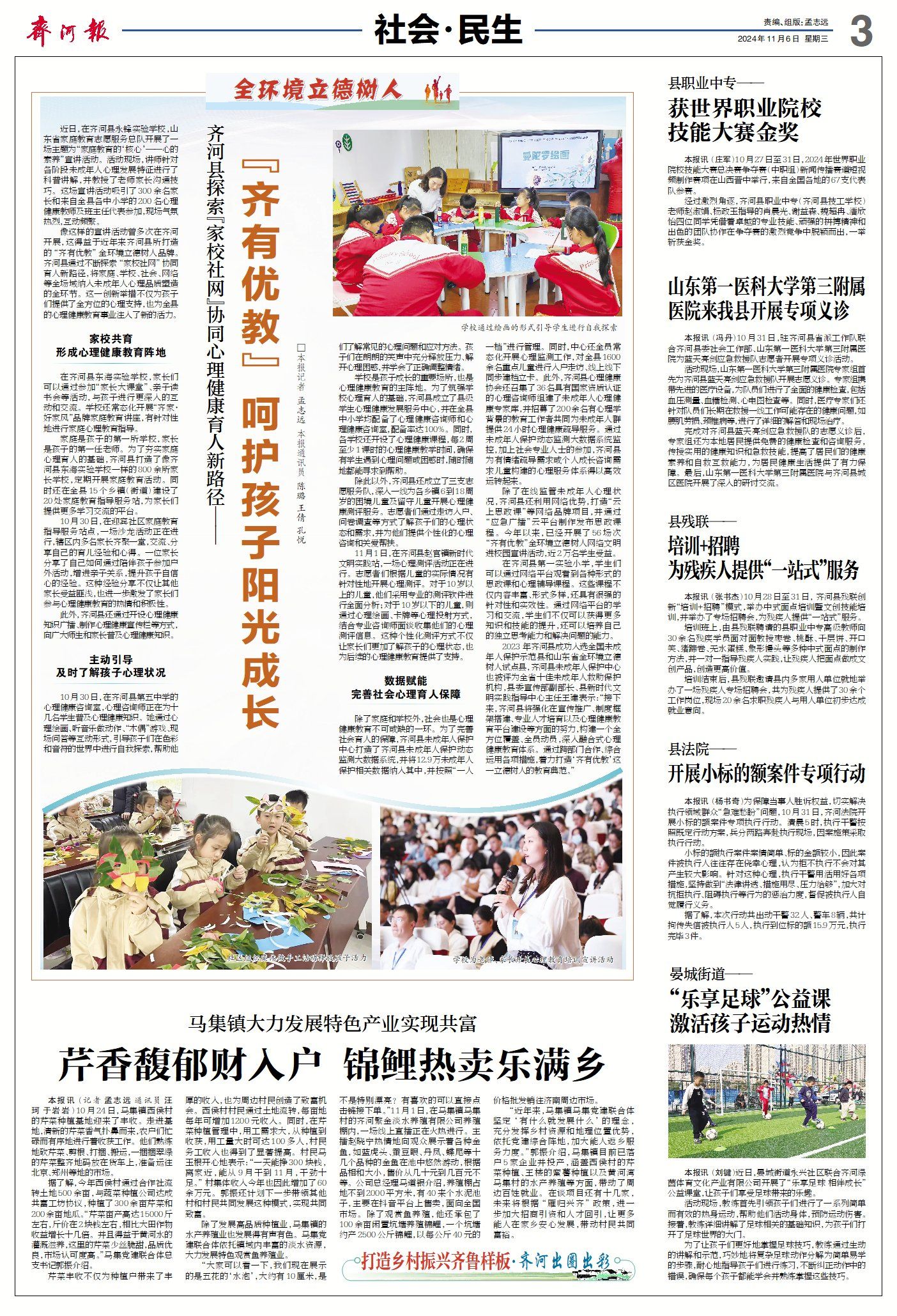 齐河县新闻周报(10月31日至11月6日) ©原创 2024-11-06 08:01 德州日报 0 ▶齐河:“一企一策”助企环保绩效升级。(点击查看详情) ▶全省行政审批服务系统唯一!齐河县“智能审批服务业务流程标准化”项目入选数字山东标准优秀应用案例。(点击查看详情) ▶冰雪时光(齐河):智能工厂做强健康“新茶饮”。(点击查看详情) ▶齐河县:多措并举共筑未成年人心理健康防线。(点击查看详情) ▶齐河县马集镇:芹香馥郁财入户 锦鲤热卖乐满乡”。(点击查看详情) ▶文化 | 趣味盎然的立冬习俗。(外三篇) 德州日报新媒体出品编辑|李晓楠审核|钟伟 终审|尹滨 (作者:德州日报)