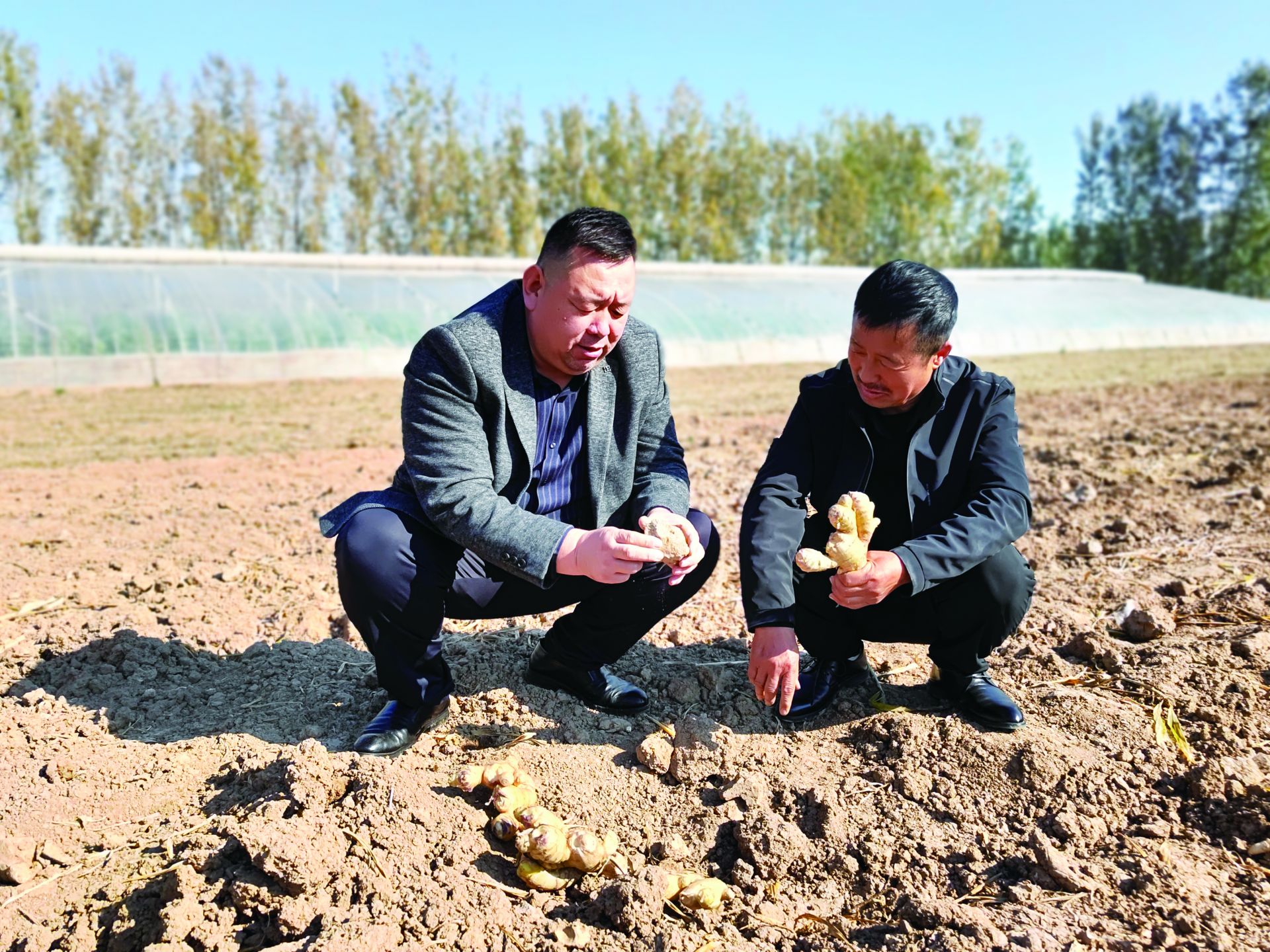 在大黄乡,与刘金柱有同样想法的农户有上百户,之所以如此,就是因为今年大黄乡在盐碱地、黏土地和砂壤土三种不同土质上试验种植大姜成功了。这背后是大黄乡强化党建引领,大力发展特色种植产业的坚持和努力,该乡通过鼓励致富带头人、党员干部、乡村“土专家”领办创办合作社,打造一批特色产业,带动群众共同增收致富。