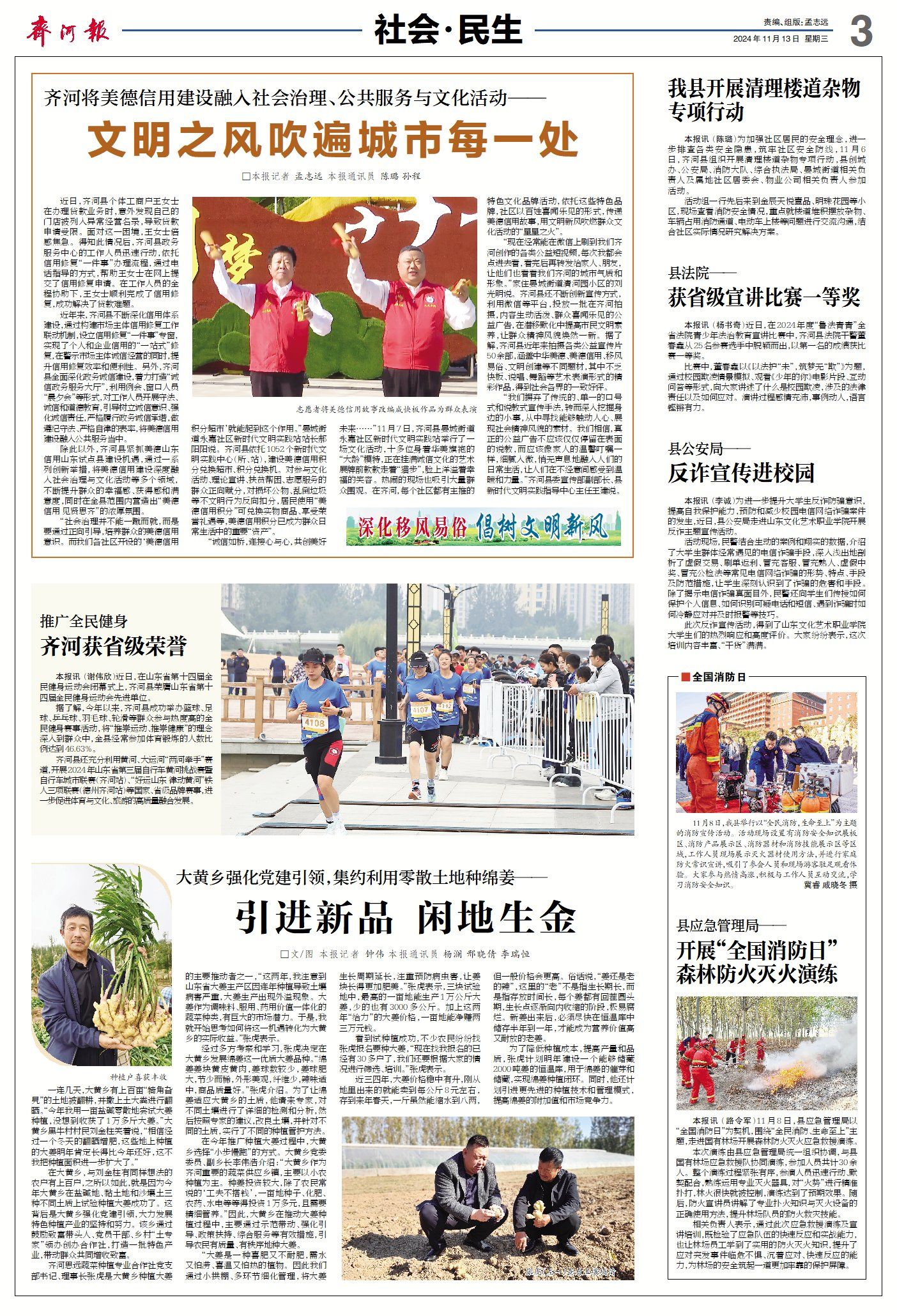 齐河县新闻周报(11月7日至11月13日) ©原创 2024-11-13 08:11 德州日报 0 ▶德州立威生物科技有限公司:大数据赋能 设备远程“体检”。(点击查看详情) ▶气象监测“一图统览” | 齐河搭建气象防灾减灾智慧服务集约化系统。(点击查看详情) ▶游齐河“黄河入海”主题旅游公路,赏“沿黄九韵”。(点击查看详情) ▶齐河:让文明之风吹遍城市每一处。(点击查看详情) ▶齐河大黄乡:党建引领促发展 零散闲地“土生金”。(点击查看详情) ▶文化 | 秋菜冬储的旧时光。(外三篇) 德州日报新媒体出品编辑|李晓楠审核|钟伟 终审|尹滨 (作者:德州日报)