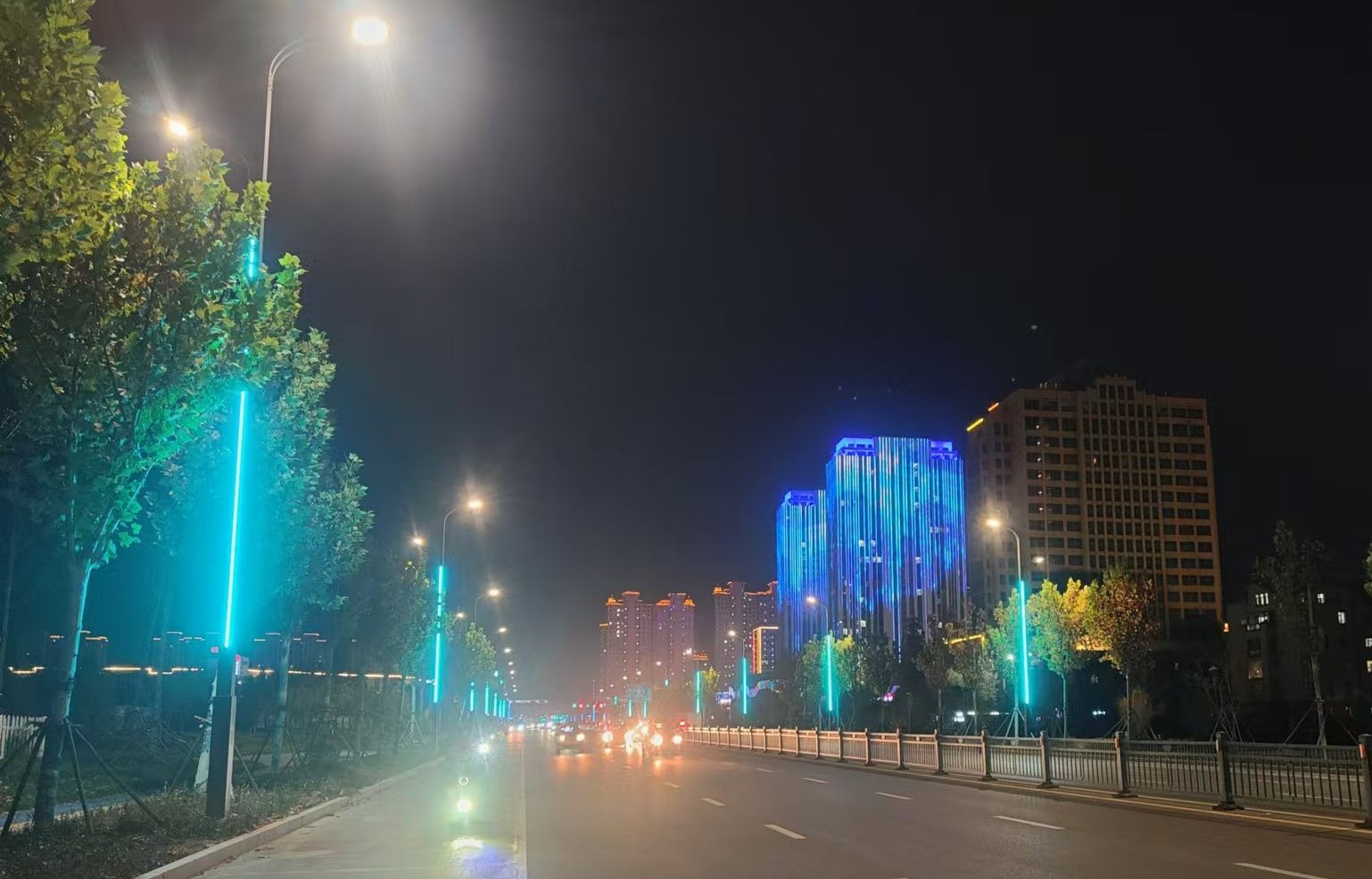 每当夜幕降临,走在乐陵城区的街道上,一盏盏路灯、一条条灯带散发出明亮而温柔的光晕,照亮城市的夜空。