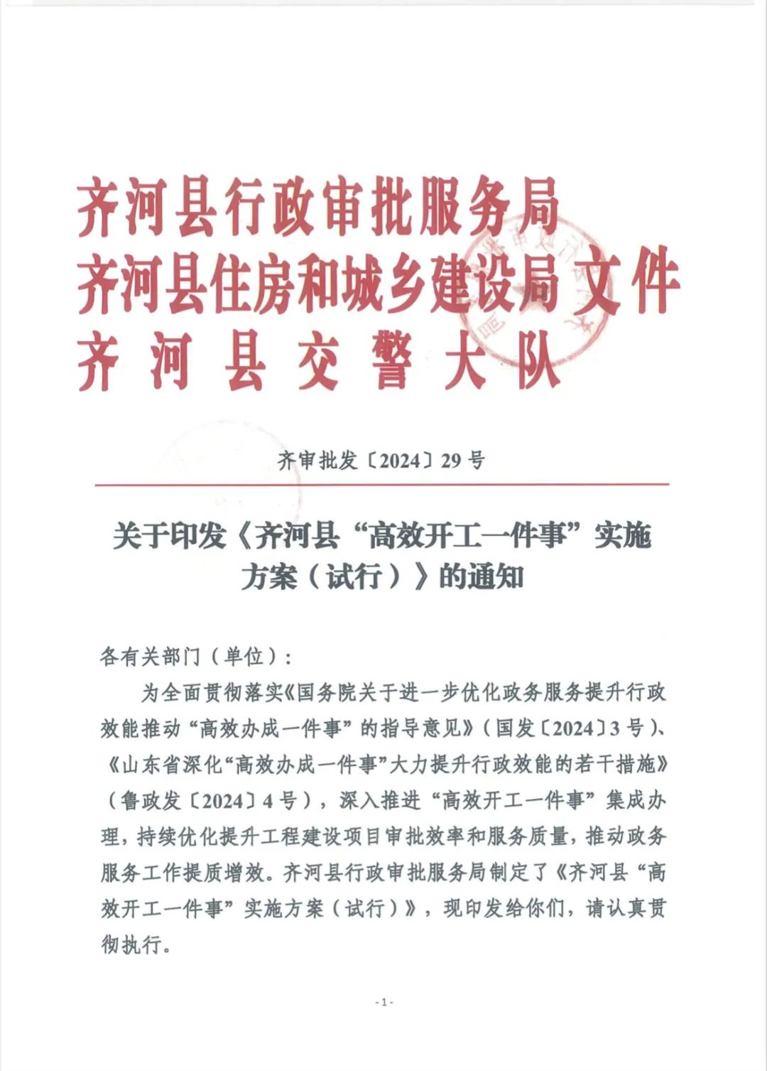 “‘高效开工一件事’创新工作的实施,更好地将各部门及部门内部资源进行整合,有效形成工作合力,统筹解决了项目推进过程中遇到的问题,为企业办事提供了极大的便利。”齐河县行政审批服务局党组成员、副局长邱袁说。
