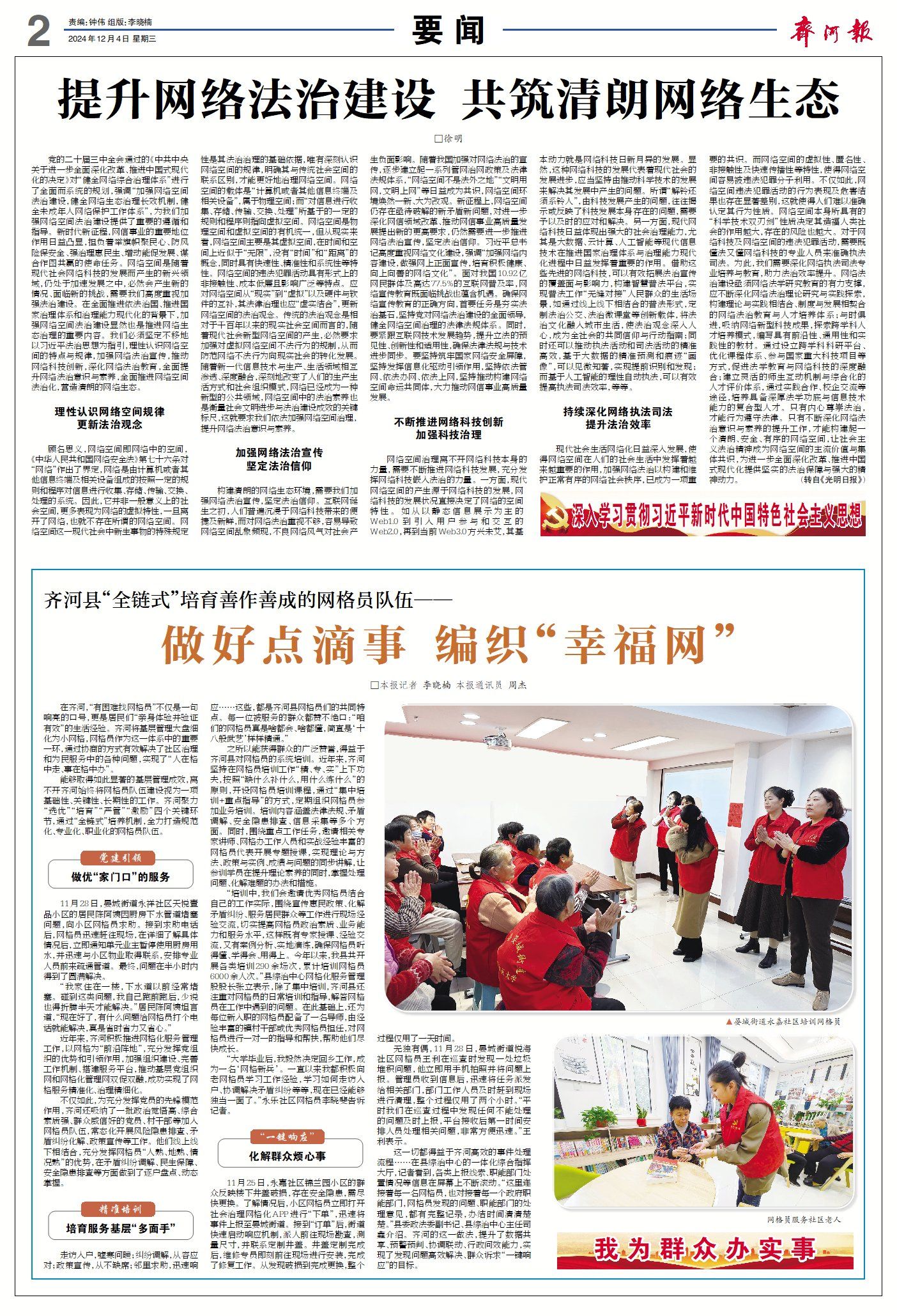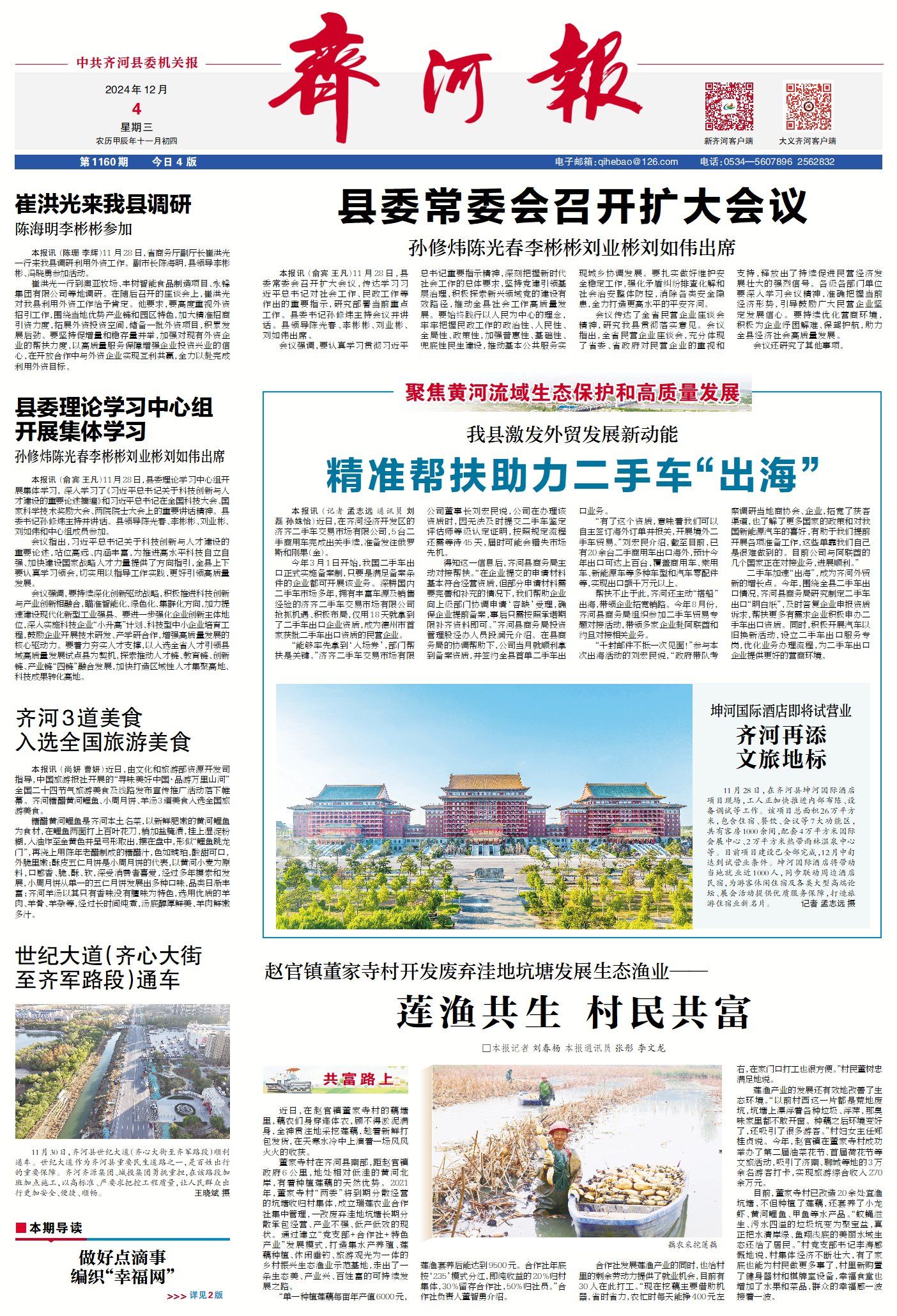 齐河县新闻周报(11月28日至12月4日) ©原创 2024-12-04 08:09 德州日报 0 ▶齐河:精准帮扶助力二手车“出海”。(点击查看详情) ▶德州新地标!26万㎡的坤河国际酒店12月中旬达到试营业条件”。(点击查看详情) ▶齐河县“全链式”培育善作善成的网格员队伍”。(点击查看详情) ▶仁里集镇:“一村一品”铺就致富路。(点击查看详情) ▶文化 | 大雪时节盼下雪。(外三篇) 德州日报新媒体出品编辑|李晓楠审核|钟伟 终审|尹滨 (作者:德州日报)