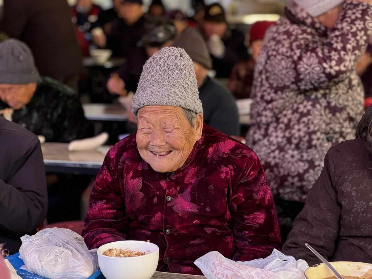 就餐中,志愿者们穿梭其间,为行动不便老人端菜递水,陪他们唠家常,饭香与温情交织,让老人们吃得暖心又舒心。“自打有了这个幸福食堂,每个月都能跟老伙伴们在一块说说话、解解闷,天天都盼着来这里吃饭”,村民刘奶奶乐呵呵地说道。