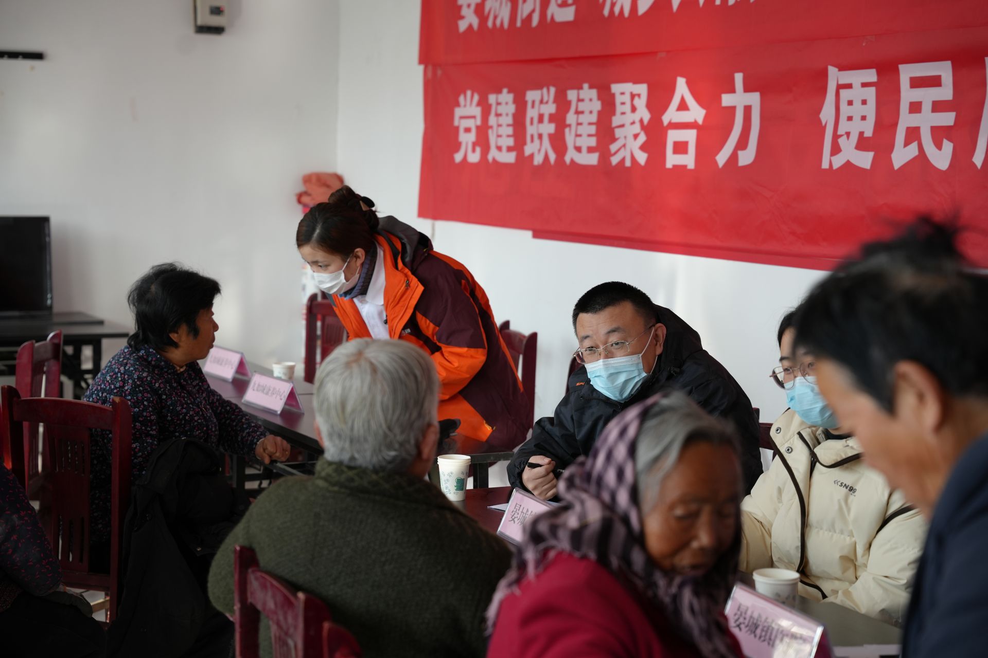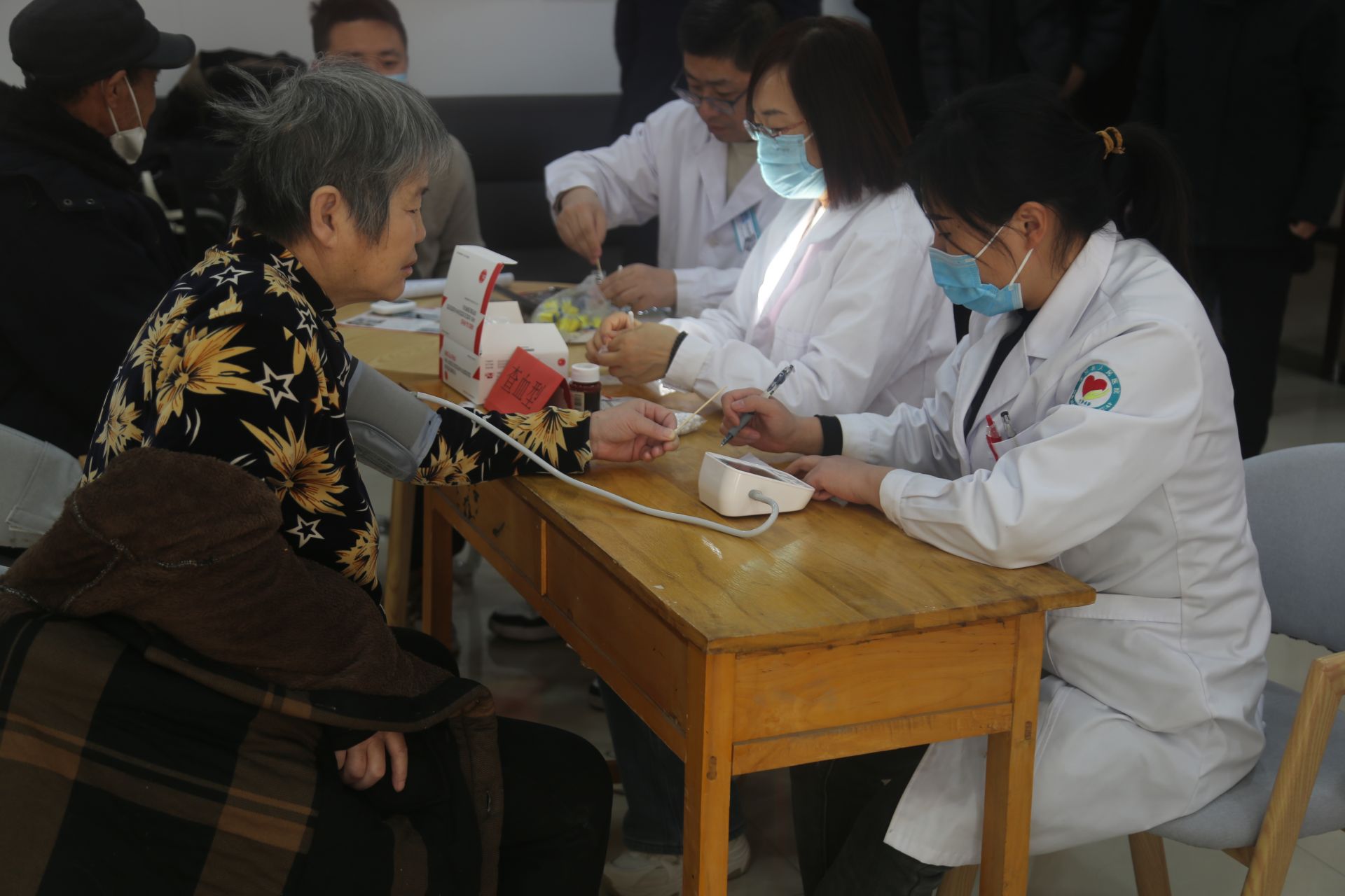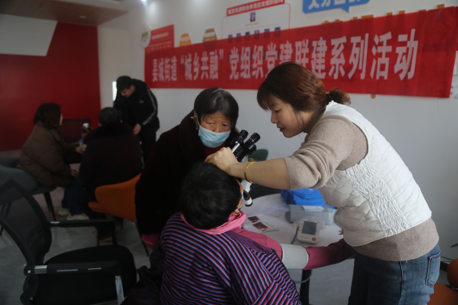 ▲甄营党建联合体与永泰社区在甄营党群中心共同领办“8+N”“健康义诊进乡村,服务群众暖民心”服务项目