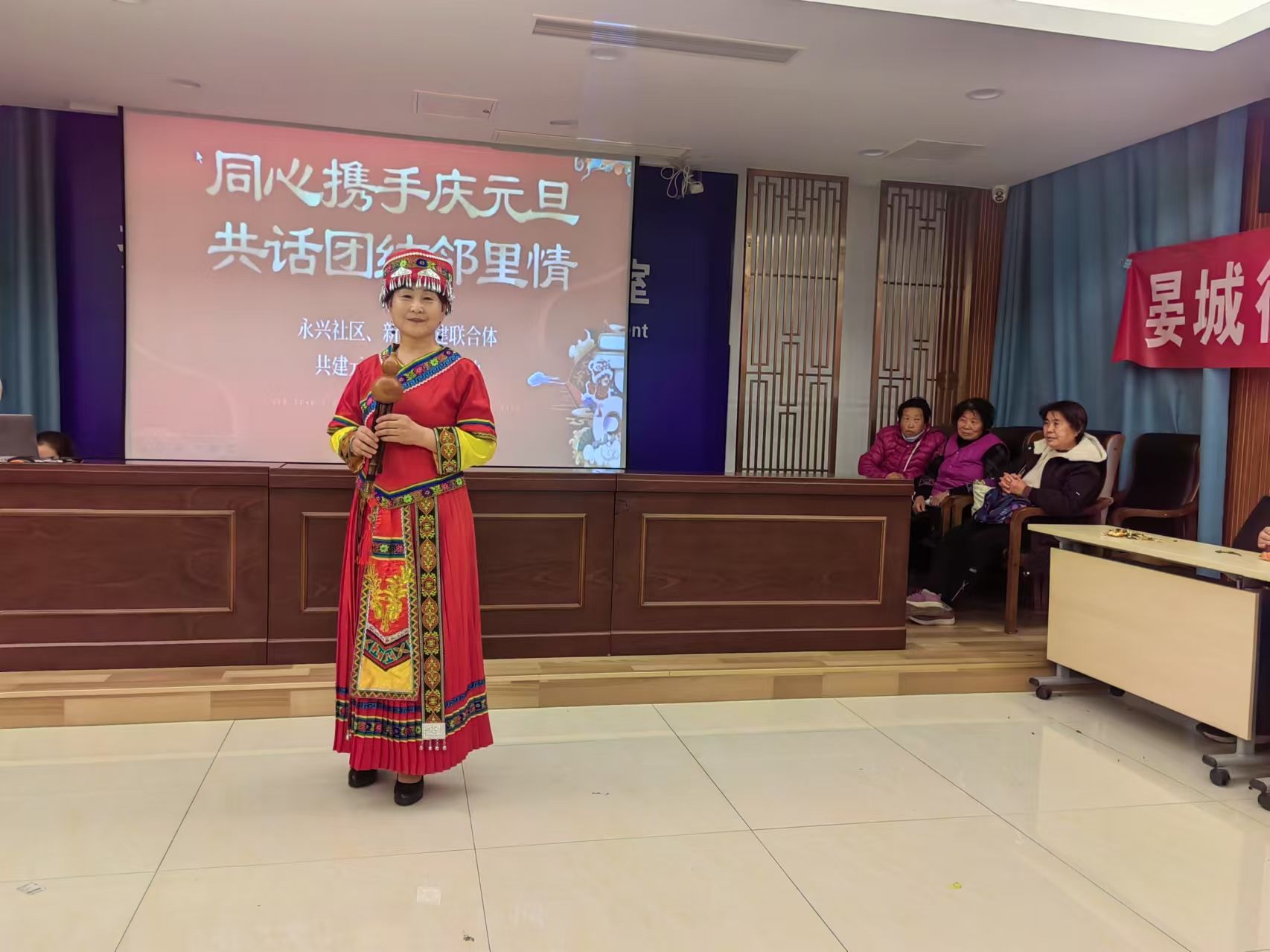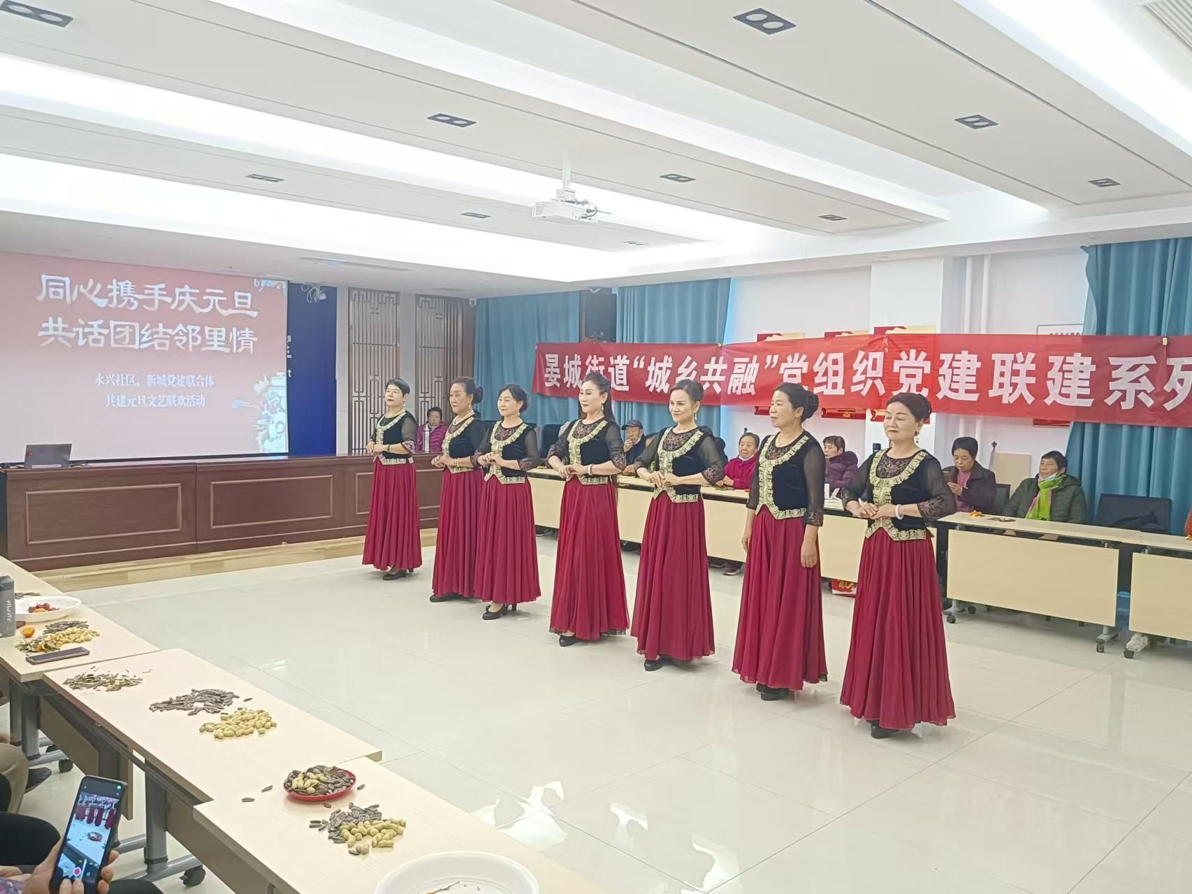 ▲新城党建联合体与永兴社区在永兴党群中心共同领办“8+N”“同心携手庆元旦 共话团结邻里情”服务项目