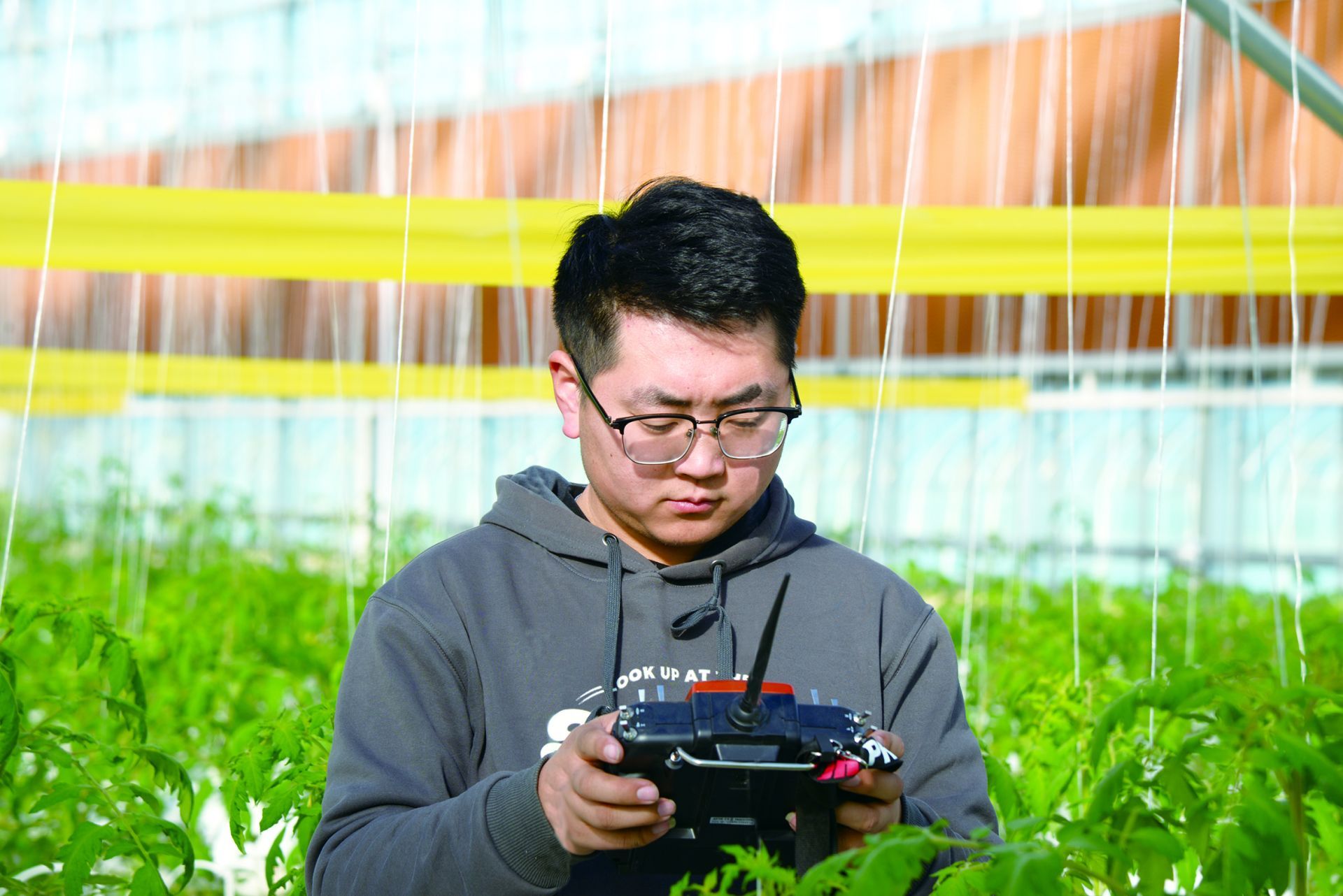 “以往传统用人工完成的种收工序,现在基本都用智能机器人完成。”智慧大棚运营主管蔺会明介绍,大棚共运用了10台智能机器人,它们各司其职,像授粉机器人高精度完成授粉工作,智能管控机器人自动调节大棚内的环境参数,采摘机器人则负责将成熟果子统一采摘。“智能机器人的应用能节省60%的人工,大大提升了生产效率。”