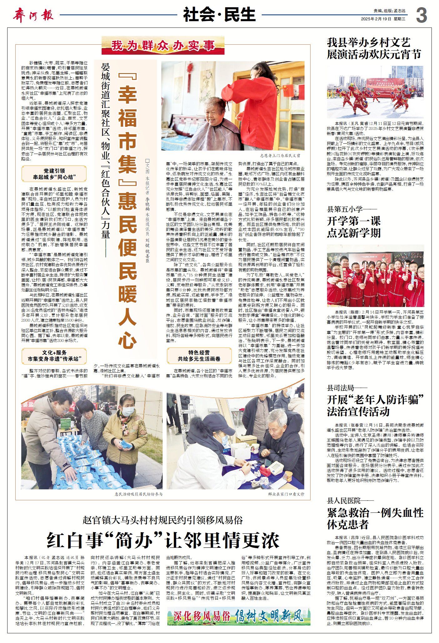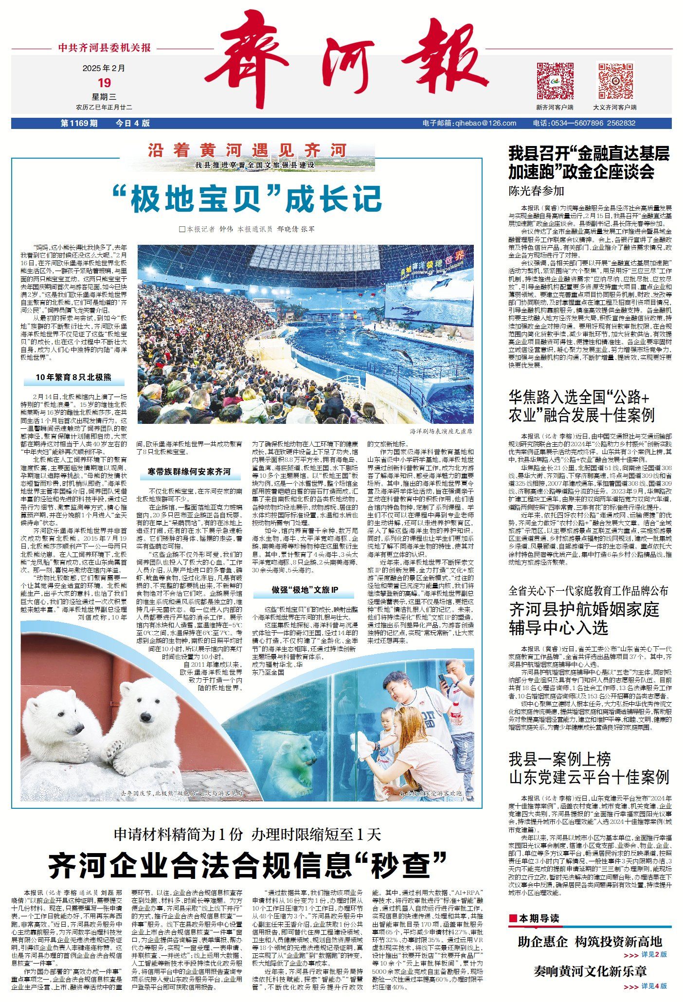 齐河县新闻周报(2月13日至2月19日) ©原创 2025-02-19 08:21 德州日报 0 ▶10年繁育8只北极熊!齐河“极地宝贝”成长记。(查看详情) ▶办理时限缩短至1天!齐河企业合法合规信息“秒查”。(查看详情) ▶优化营商环境 助推高质量发展 | 齐河经济开发区:助企惠企 构筑投资新高地。(查看详情) ▶齐河县晏城街道:“幸福市集”惠民便民暖人心。(查看详情) ▶齐河县赵官镇:红白事“简办”让邻里情更浓。(查看详情) ▶文化 | 奏响黄河文化新乐章。(外两篇·首) 德州日报新媒体出品编辑|李晓楠审核|钟伟 终审|尹滨 (作者:德州日报)