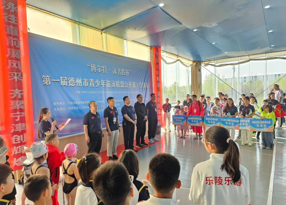4月19日,宁津县举办“博尔特·泳者胜杯”第一届德州市青少年游泳联盟公开赛,来自全市各县市区的13个代表队,350余名选手参加,其中年龄最小的仅4周岁。赛事涵盖初中组、小学甲组至幼儿组,设置自由泳、蛙泳、接力等多项竞技,鼓励低年级跨组参赛,以激发青少年运动潜能。