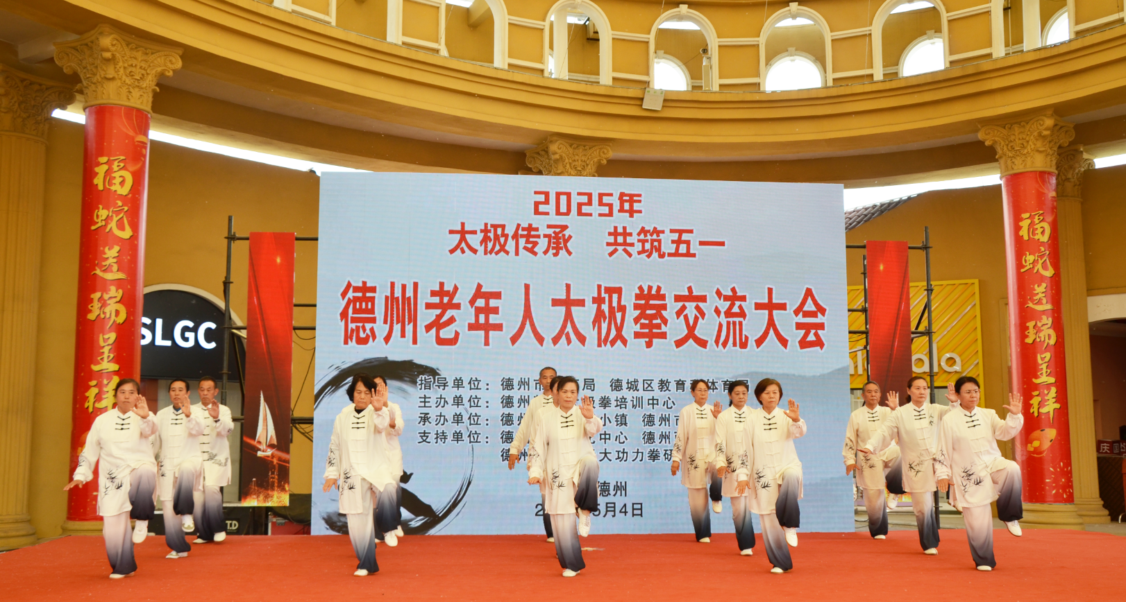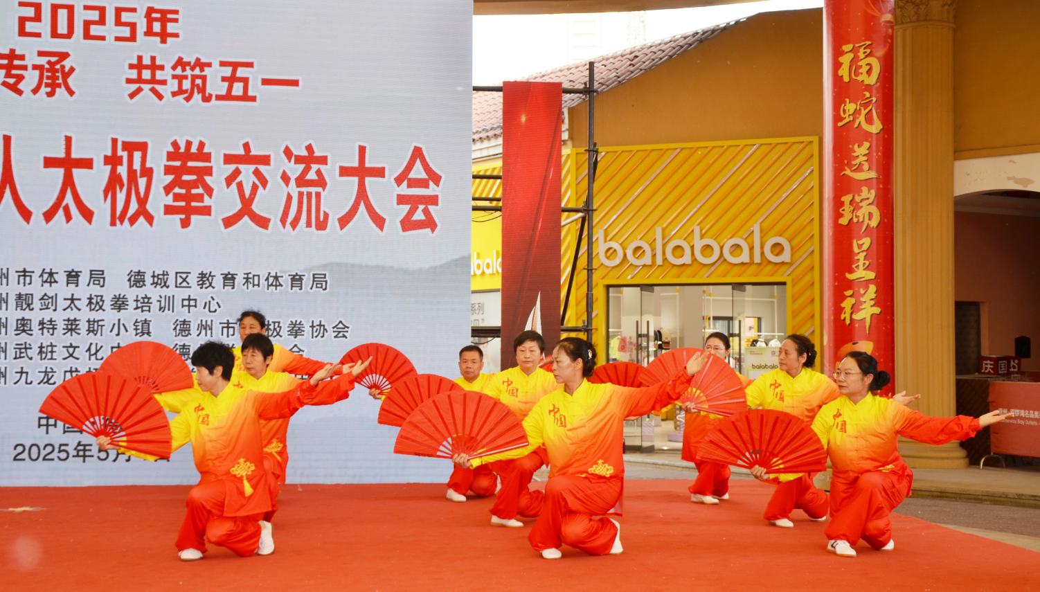 5月4日,德州市老年人太极拳交流大会在铜锣湾奥特莱斯小镇举行。此次活动由德州市体育局、德城区教体局指导,德州市靓剑太极拳培训中心主办,吸引了全市8支队伍,近160名武术爱好者参加。