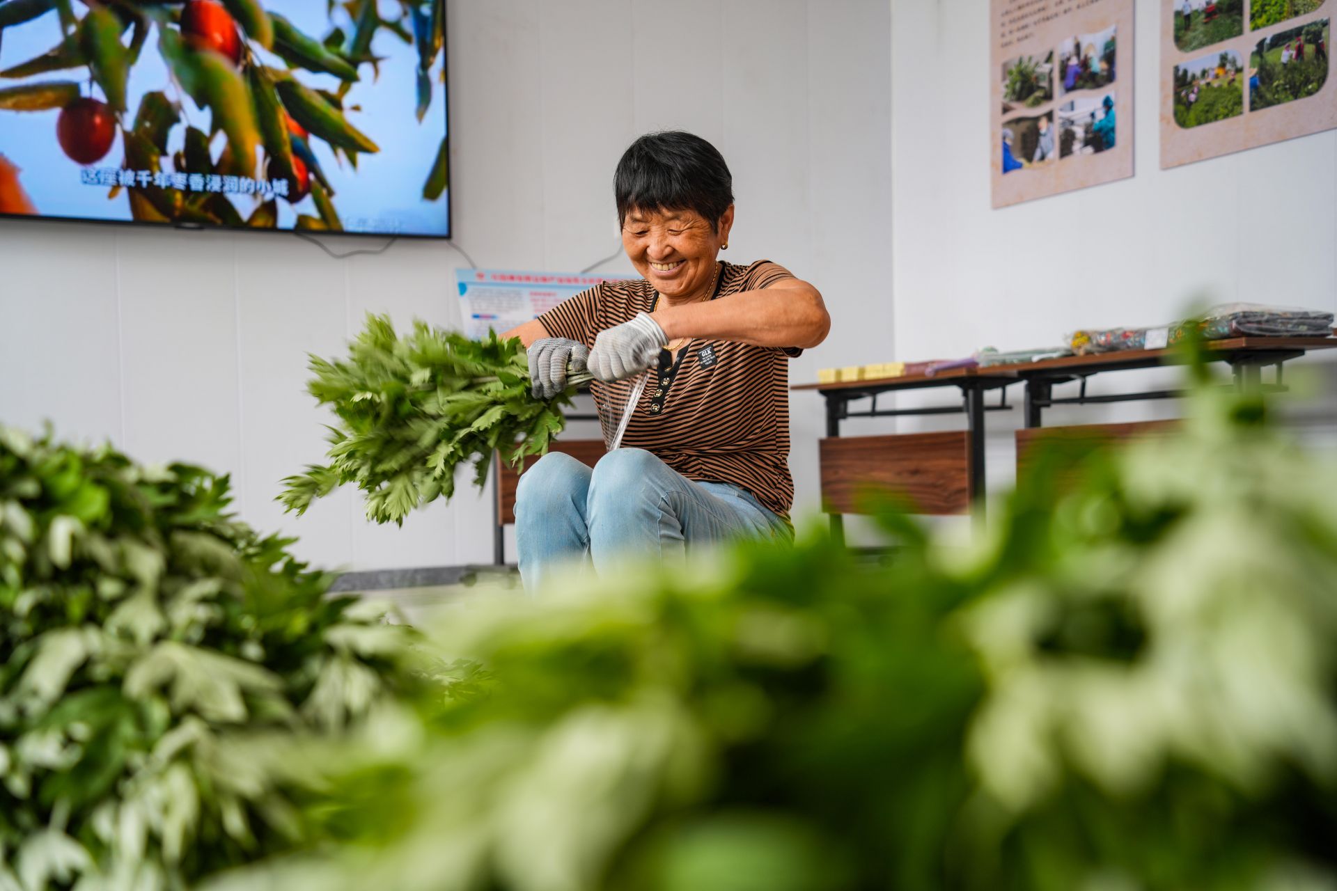 5月23日,乐陵市花园镇关王堂村种植的艾草进入收获季,当地村民抢抓晴好天气开展收割、加工,网红“村支书”田间现场直播助农销售艾草,供应端午市场。