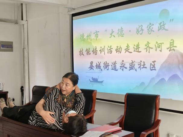 为增强社区居民的健康意识,提升社区居民的养老护理能力,缓解家庭养老压力,5月28日,齐河县晏城街道永盛社区携手知心大姐家政开展“好家政”技能培训进社区活动。本次活动聚焦养老护理,为社区居民提供学习专业技能的平台,助力居民健康生活。