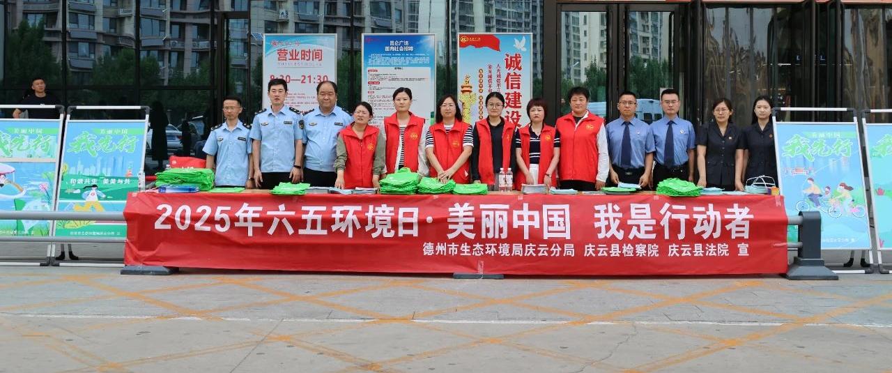 庭审结束后,庆云县人民法院与庆云县检察院、德州市生态环境局庆云分局在中商昆仑购物广场联合开展“六五环境日·美丽中国 我是行动者”普法宣传活动。