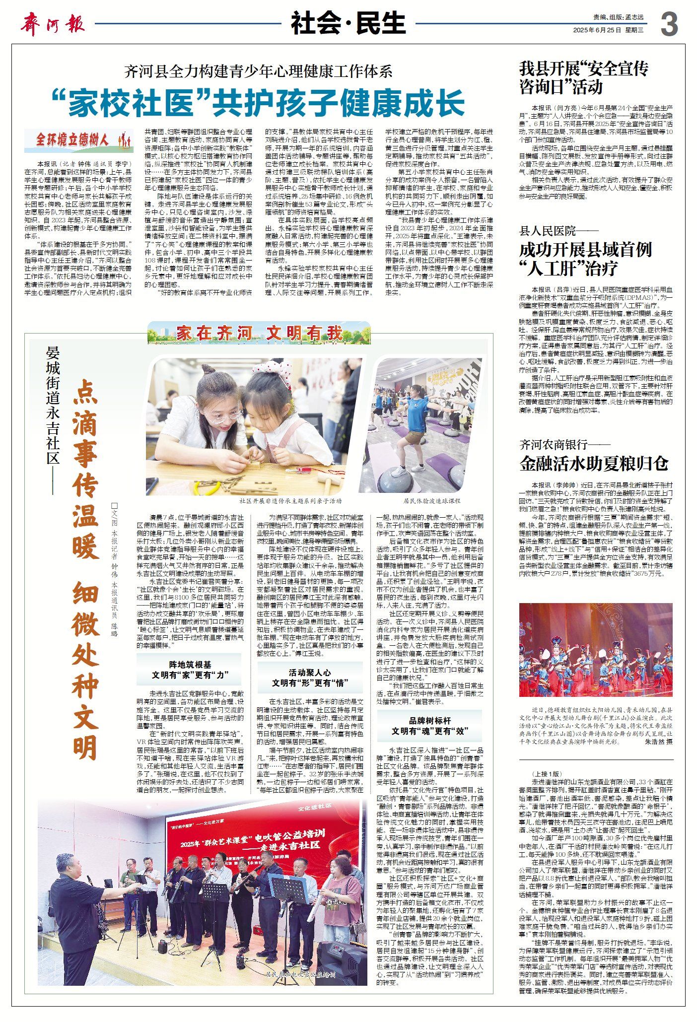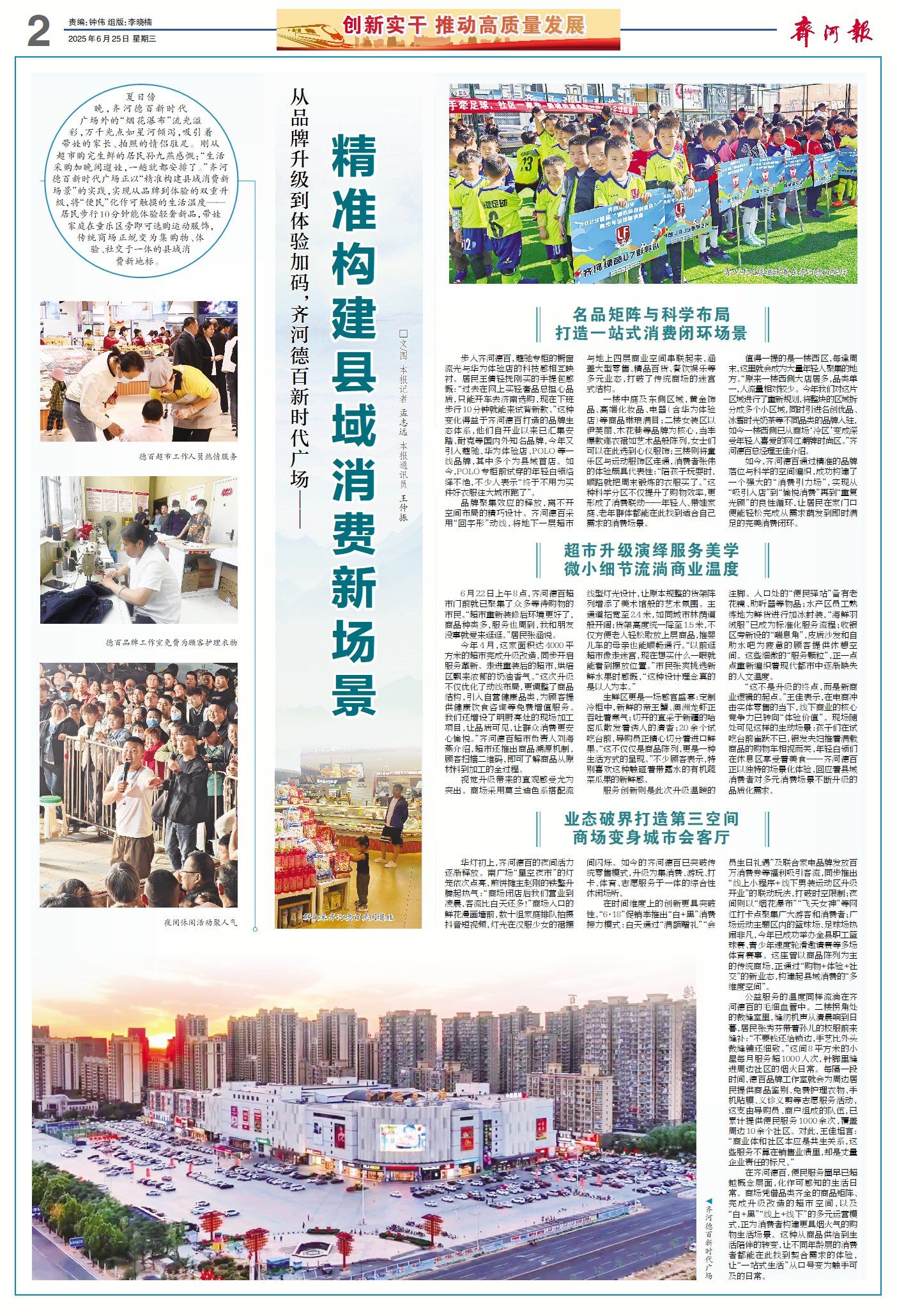 齐河县新闻周报(6月19日至6月25日) ©原创 2025-06-25 14:03 德州日报 0 ▶齐河:“荣军联盟”激活双拥共建“生态圈”。(查看详情) ▶齐河:科学种田有“质”更有“智”。(查看详情) ▶买菜遛娃逛潮牌,齐河德百一站式拿捏生活烟火气。(查看详情) ▶齐河县:全力构建青少年心理健康工作体系。(查看详情) ▶齐河县晏城街道永吉社区:点滴事传温暖 细微处种文明。(查看详情) ▶文化 | 巨一会:战火中的“馍馍传奇”(外四篇)。 德州日报新媒体出品编辑|李晓楠审核|钟伟 终审|尹滨 (作者:德州日报)