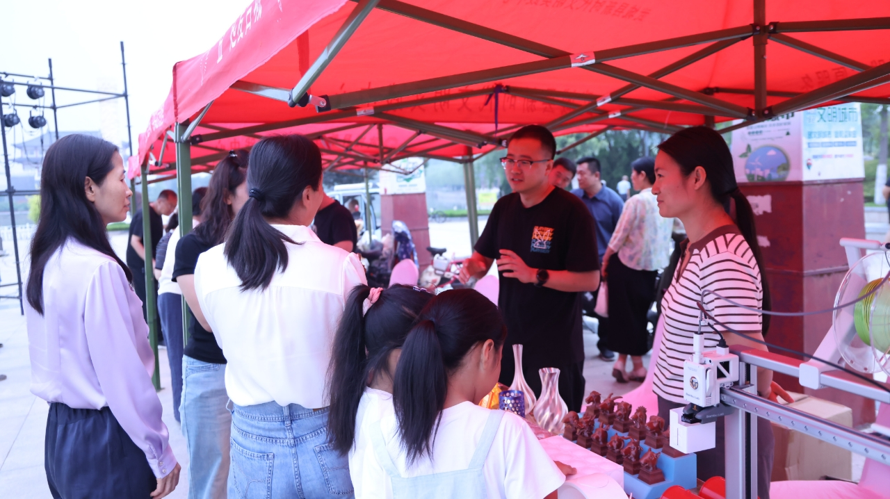 同时,活动现场特别设置非遗及特色产品展销区,烙印葫芦、剪纸、木板烙画等传统技艺展示吸引众多市民驻足,武城黑五宝、花馍等地方特产也销售火热。此外,现场还有志愿者同步推介“新风公益商圈联盟”优惠政策,以实际举措引导市民参与文明实践。